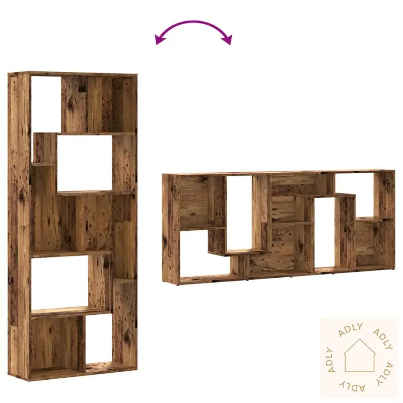 Praktisk materiale: Den er laget av konstruert tre av høy kvalitet–et robust materiale med glatt overflate som både gir styrke og stabilitet, samt beskytter mot fuktighet. Dette gjør at bokhyllen holder seg pen lenge og er enkel å rengjøre, noe som er ideelt for deg som vil ha møbler med minimalt vedlikehold.Rikelig med oppbevaringsplass: De romslige hyllene gir deg mange muligheter til å organisere bøker, dekor, mapper eller andre gjenstander. Det er lett å skape orden og gjøre favorittbøkene eller pyntegjenstandene synlige.Allsidig skap: Bokhyllen er utformet slik at du kan plassere den stående vertikalt eller liggende horisontalt, helt etter hva som passer best i rommet ditt. Den kan enkelt brukes som en moderne skjenk for ekstra oppbevaringsplass til f.eks. stue eller spisestue.Advarsel: