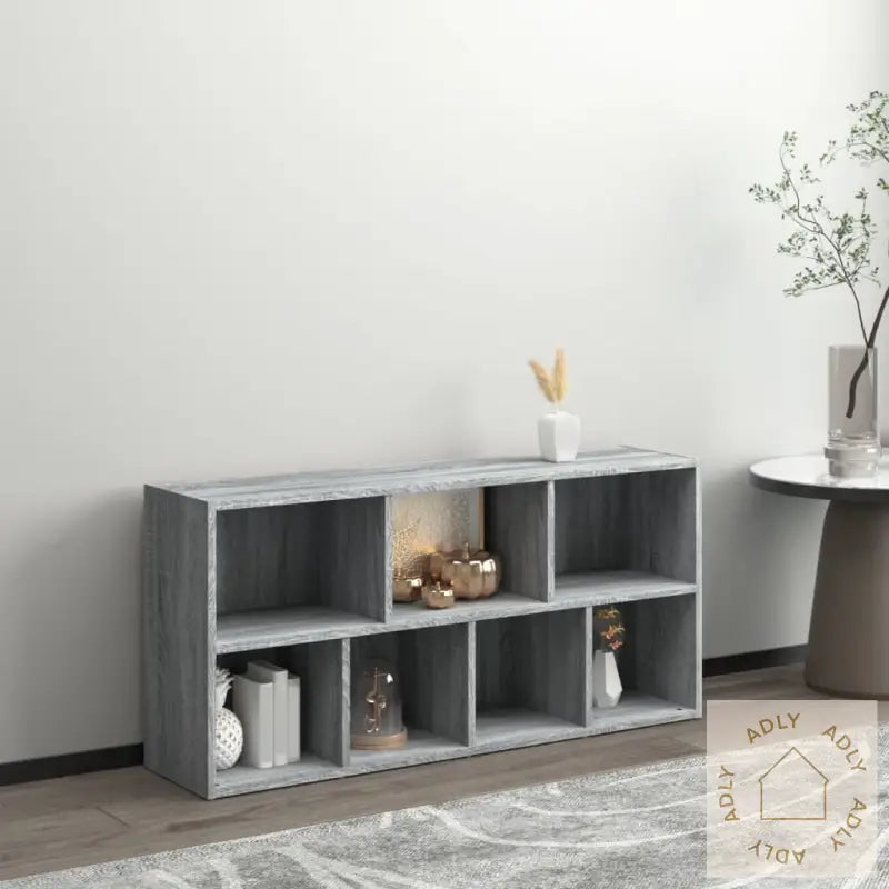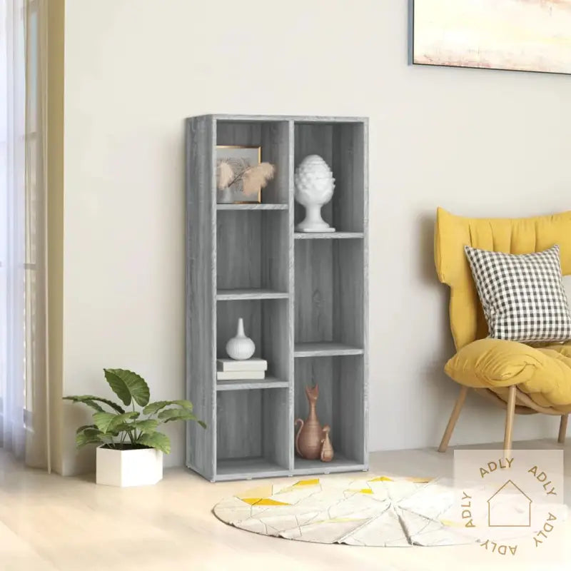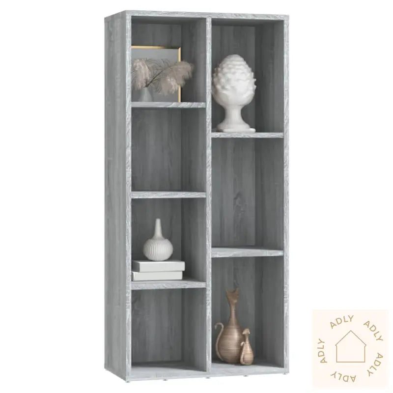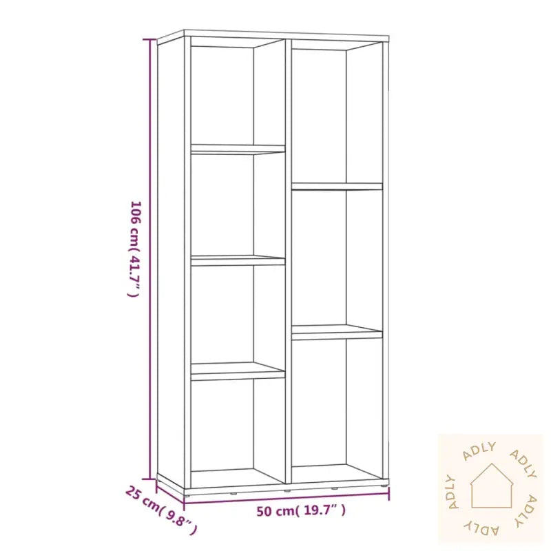 Solid materiale: Bokhyllen er laget av konstruert tre med høy kvalitet. Overflaten er glatt, og materialet gir styrke, stabilitet og god motstand mot fuktighet. Dette gjør at hyllen holder seg pen lenge, selv med daglig bruk.Rikelig med oppbevaringsplass: Utstyrt med 7 rom gir denne bokhyllen deg rikelig plass til oppbevaring og organisering av alt fra bøker, magasiner, DVD-er og forskjellige multimediaenheter til dekorative favoritter. Perfekt for deg som vil ha en funksjonell bokhylle som også fremhever innredningen.Enkel rengjøring: Overflatene er enkle å holde rene – det holder å bruke en fuktig klut, så ser bokhyllen ny ut lenge uten mye vedlikehold.Advarsel:
