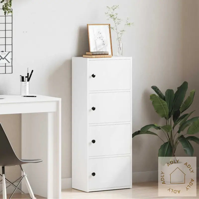 Rikelig med lagringsplass: Med flere praktiske hyller bak dører får du rikelig med oppbevaringsmuligheter til bøker, magasiner og diverse dokumenter. Skapet hjelper deg å holde orden og lar deg skjule småting som ellers fort lager rot, slik at stuen eller arbeidsplassen din alltid fremstår ryddig og inviterende.