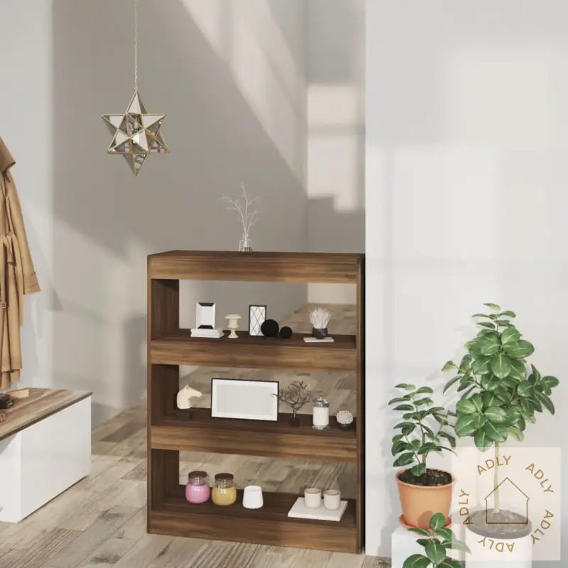 Bokhyllen i tre har et elegant og klassisk design, som gjør den til et dekorativt og praktisk innslag blant dine møbler til hjemmet. Uansett om du trenger ekstra lagringsplass på stua, kontoret eller gangen, passer denne bokhyllen perfekt inn og gir et stilrent uttrykk i brun eik som enkelt matcher annen innredning.