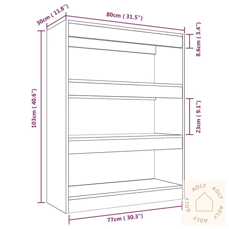 Farge: brun eikMateriale: konstruert treMål: 80 x 30 x 103 cm (B x D x H)Kan brukes som bokhylle eller romdelerMontering kreves: jaADVARSEL: For å forhindre at produktet velter, må medfølgende festemidler for vegg brukes.