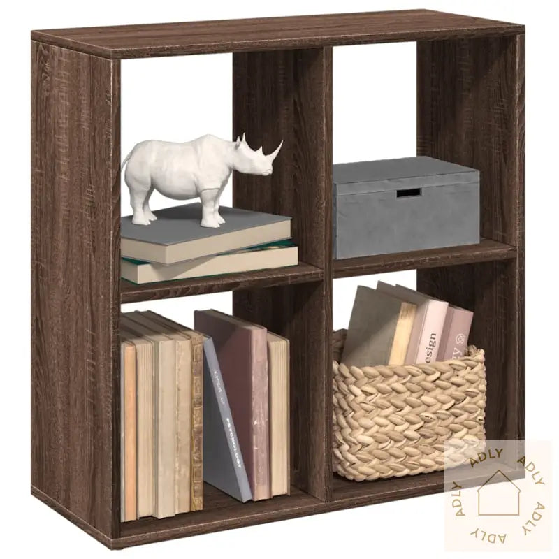 Stabilt og slitesterkt materiale: Produsert i konstruert tre, noe som gir en jevn overflate og høy motstandsdyktighet mot fukt, vridning og sprekker. Dette materialet er både miljøvennlig og holdbart, så bokhyllen gir langvarig verdi og ser flott ut over tid.Rikelig med oppbevaring: De fire kubeformede rommene gir deg god plass til å sortere og vise fram bøker, dekor, bilder eller småting – alt du trenger for å gi rommet ditt et personlig preg.Fleksible oppbevaringsalternativer: Bokhyllen kan plasseres både liggende og stående, noe som gjør den lett å tilpasse etter størrelse og utforming på rommet ditt. Du kan for eksempel bruke den vannrett som lav romdeler eller loddrett for mer tradisjonell lagring.Allsidig bruk: Dette møbelet fungerer ikke bare som bokhylle, men også som en praktisk romdeler som gir deg muligheten til å skape nye soner hjemme. Den kan brukes i stuen for å vise frem dine favorittdekorasjoner, i studierommet til papirer og bøker, på soverommet til personlige ting, eller i kjelleren for ekstra oppbevaring. Designet i brun eik gjør det enkelt å matche med andre hagemøbler og utendørsmøbler, hvis du ønsker en helhetlig stil gjennom flere rom.Enkel å vedlikeholde: Den glatte overflaten gjør at hyllen raskt kan tørkes ren med en fuktig klut. Den krever minimalt vedlikehold, så du får mer tid til å nyte det ryddige hjemmet ditt.Advarsel: