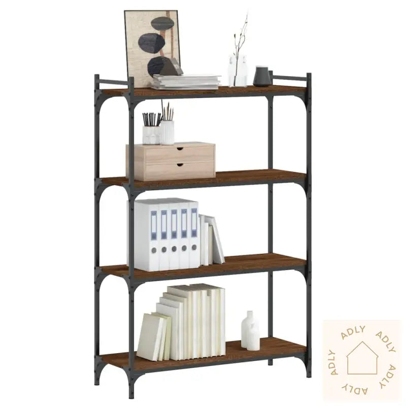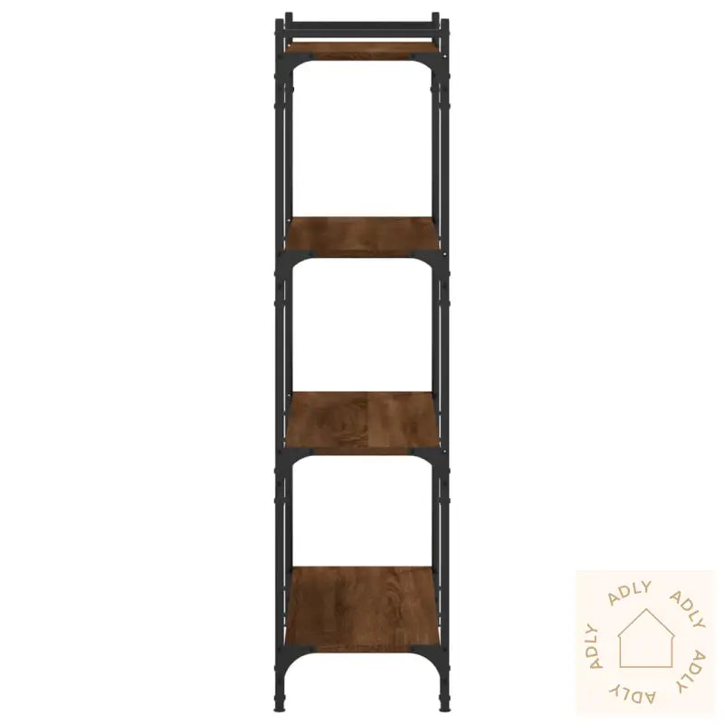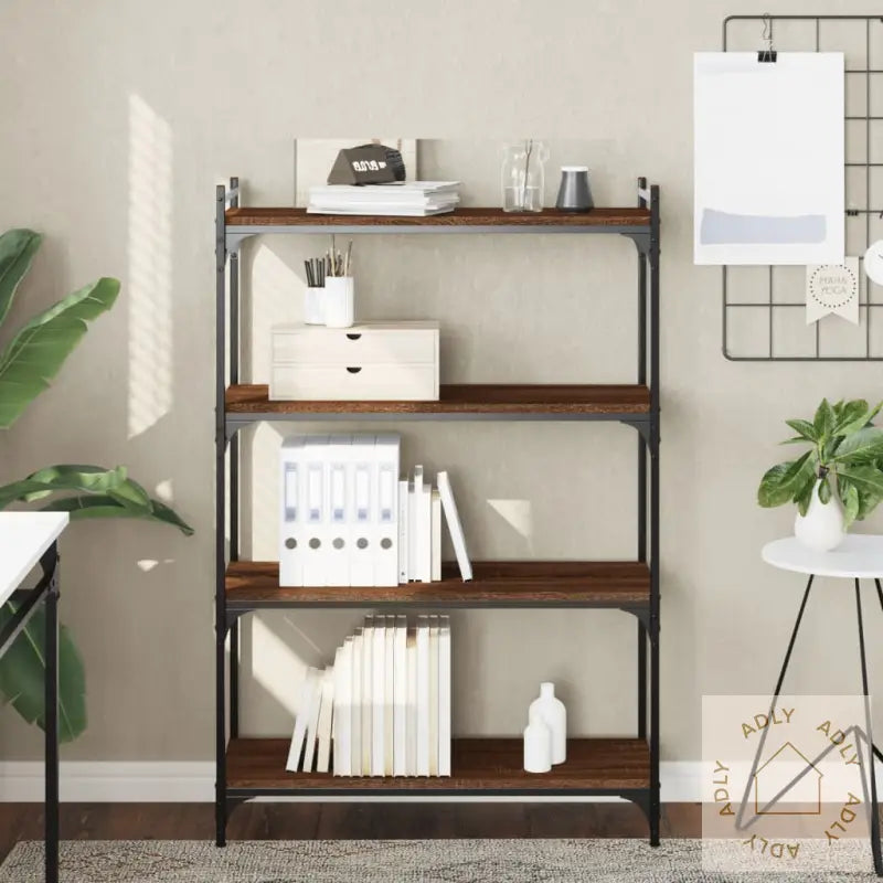 Slitesterkt materiale: Bokhyllen er laget av konstruert treverk av høy kvalitet; overflaten er glatt, solid, stabil og godt beskyttet mot fukt. Det gjør hyllen svært lett å vedlikeholde og rengjøre, samtidig som den holder seg pen i lang tid.Rikelig med oppbevaring: Du får god plass til både bøker, magasiner og personlige dekorelementer. Med oversiktlig og romslig lagringsplass har du alltid det du trenger lett tilgjengelig – perfekt for deg som liker å ha ting organisert.Justerbare føtter: Fire justerbare føtter med plastputer sørger for at bokhyllen står stødig uansett underlag. Dette sikrer balanse selv om gulvet ikke er helt jevnt, og beskytter også mot riper i gulvet.Metallramme: Den solide metallrammen gir bokhyllen et hint av industriell stil. Samtidig sørger metallet for ekstra holdbarhet og god stabilitet, slik at du kan bruke bokhyllen trygt år etter år.Advarsel: