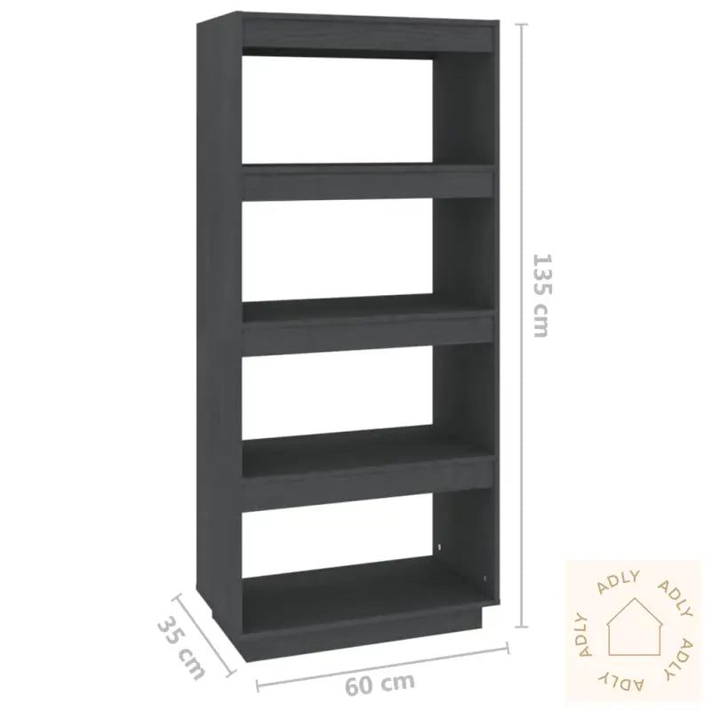 Farge: gråMateriale: heltre furuMål: 60 x 35 x 135 cm (B x D x H)Kan brukes både som bokhylle og romdelerMontering kreves: ja