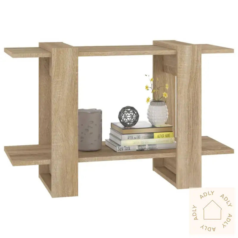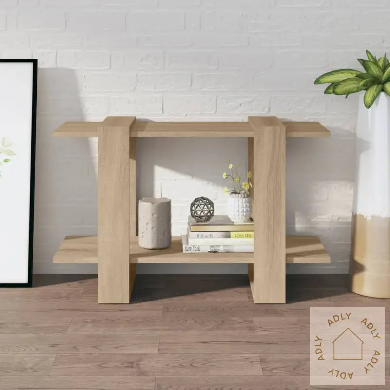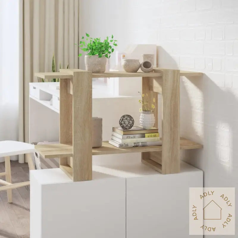 Bokhyllen gir rikelig med lagringsplass for magasiner, bøker, DVD-er, multimediautstyr og andre pyntegjenstander, så alt du bruker mest er alltid innen rekkevidde. Den solide konstruksjonen i konstruert tre gjør hyllen ekstra slitesterk, samtidig som den er lett å vedlikeholde – en fuktig klut er alt som trengs for å holde den ren. I tillegg bidrar sonoma eik-finishen til et moderne og varmt uttrykk, slik at du enkelt kan kombinere den med resten av dine møbler til hjemmet eller til og med hagemøbler dersom du ønsker en sammenhengende stil.