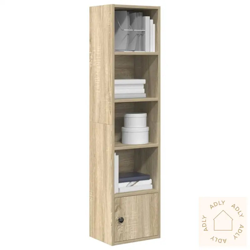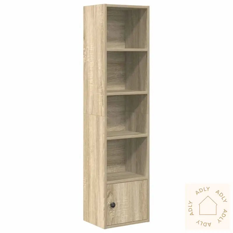 Stabilt og slitesterkt materiale: Bokhyllen er laget av konstruert tre, som er kjent for sin holdbarhet og stabilitet. Dette materialet tåler daglig bruk, er motstandsdyktig mot fukt og holder seg pent over tid uten å vri seg eller sprekke. Materialvalget gjør hyllen til et godt og langsiktig valg innen bokhyller og stående hyller.Rikelig med lagringsplass: Med flere åpne hyller og et skap med dør får du god plass til å organisere hele boksamlingen din, samt blader, papirer eller andre ting du vil ha ryddig og lett tilgjengelig. Det store rommet bak døren hjelper deg å skjule det du ikke ønsker å ha synlig.Fleksibel dørinstallasjon: Du kan selv velge om skapdøren skal åpnes mot høyre eller venstre – enkelt å tilpasse akkurat der bokhyllen skal stå hjemme hos deg, enten den plasseres alene eller sammen med andre møbler.Ulike bruksområder: Bokhyllen er ikke bare genial for bøker! Bruk den også til å sette frem pyntegjenstander, bilder, planter og andre dekorative elementer for å skape din personlige stil i hjemmet.Enkel å vedlikeholde: Den glatte overflaten i sonoma eik-finish er lett å tørke av med en fuktig klut, så hyllen holder seg ren og pen uten mye styr. Dette gir deg mer tid til å nyte møblene hjemme, enten det er bokhyller, hagemøbler eller annet interiør.Advarsel: