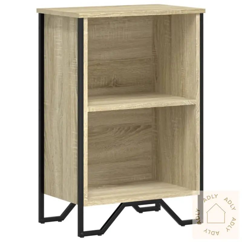 Holdbart materiale: Bokhyllen er laget av konstruert treverk, som gir en solid og varig struktur. Den glatte overflaten gjør det enkelt å holde møbelet rent, samtidig som materialet er motstandsdyktig mot fuktighet og bidrar til lang levetid.Rikelig med lagringsplass: Med 2 åpne rom får du god plass til å organisere bøker, små hagemøbler eller andre dekorative gjenstander. Bøkene dine og personlige eiendeler kan oppbevares oversiktlig og lett tilgjengelig.Stabil og solid topp: På toppen av bokhyllen kan du enkelt plassere dekorative ting, bilder eller potteplanter, slik at du setter ditt personlige preg på hjemmets møbler.Metallføtter: De robuste metallføttene gir ikke bare ekstra stabilitet, men løfter også helhetsinntrykket med sitt moderne uttrykk. Dette gir bokhyllen en rolig, men samtidig eksklusiv stil som passer godt sammen med andre møbler til hjemmet.Advarsel: