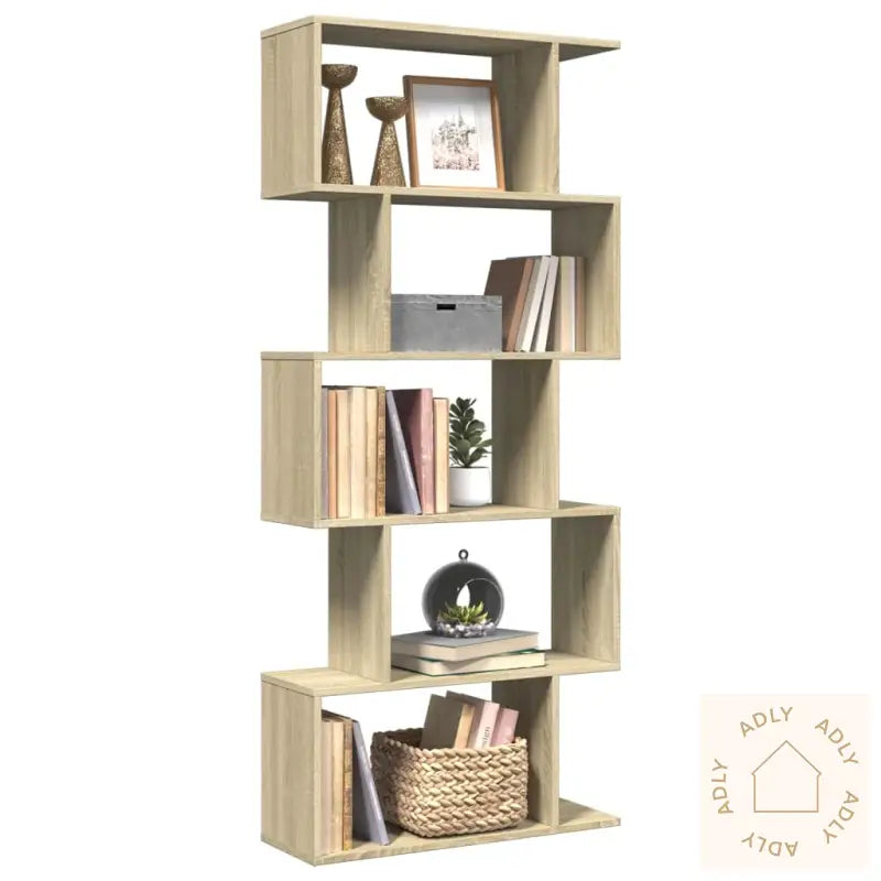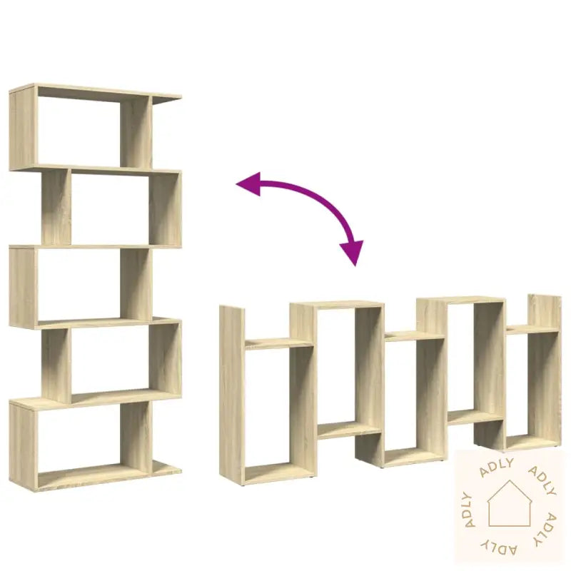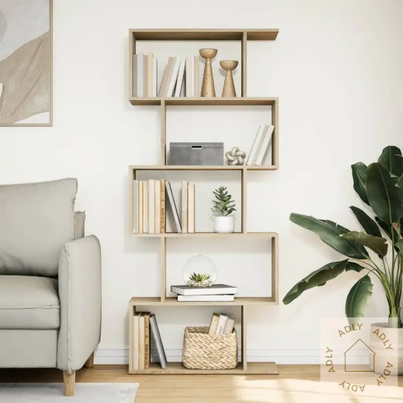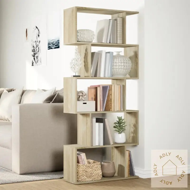 Romdeleren og bokhyllen kombinerer moderne, geometrisk design med praktisk oppbevaring, noe som gjør den ideell for å tilføre stil og orden til hjemmet ditt. Med sitt trendy utseende i sonoma eik passer denne bokhyllen perfekt inn i de fleste interiørstiler, enten du ser etter nye møbler til hjemmet eller ønsker å skape et mer organisert rom.