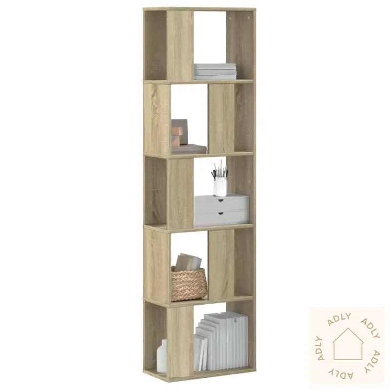 Stabilt og slitesterkt materiale: Bokhyllen er laget av konstruert tre, et robust materiale som gir en jevn og elegant overflate. Det tåler både fukt og daglig bruk uten å vri seg eller sprekke, noe som gjør det til et trygt valg for møbler til hjemmet eller kontoret.Romslig oppbevaring: Med flere åpne hyller får du god plass til å organisere og vise frem alt fra bøker og nips til rammer og planter. Slik kan du holde det ryddig, samtidig som du gjør bokhyllen til en del av interiøret.Enkelt vedlikehold: Den glatte overflaten er lett å tørke av med en fuktig klut, så hyllen holder seg pen lenge – perfekt for deg med en travel hverdag.Praktisk partisjonsdesign: Smarte inndelinger i hyllene gjør det superenkelt å sortere og ordne tingene dine slik du vil ha det, enten du ønsker å samle bøker for seg eller blande pynt og fotoalbum.Allsidig design: Bokhyllen står stødig fritt, og med sitt stilrene uttrykk i sonoma eik passer den inn overalt – enten du trenger ekstra lagringsplass, vil bruke den som romdeler, eller leter etter stående hyller som kompletterer møbler til hjemmet.Advarsel: