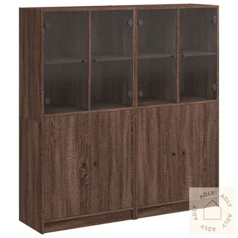 Solid og holdbart materiale: Bokhyllen er laget av konstruert tre med eksepsjonell kvalitet. Den glatte overflaten gjør den lett å rengjøre, mens materialet sikrer styrke, stabilitet og motstandsdyktighet mot fuktighet. Dette betyr at bokhyllen varer lenge og tåler daglig bruk.Rikelig med oppbevaringsplass: Med flere romslige hyller får du god plass til å organisere og vise fram alt fra bøker og dokumenter til magasiner og samleobjekter. Perfekt hvis du ønsker skikkelig orden.Stabil og solid topp: Toppen på denne bokhyllen kan brukes kreativt til å sette frem blant annet dekorasjoner, bilder eller potteplanter og gir ekstra muligheter for å gjøre stuen personlig.Praktisk design: Eier du ting som du vil skal være ute av syne, kan de enkelt gjemmes bak dørene. Praktiske håndtak gjør det smidig å åpne og lukke skapene, så du alltid har tilgang til det du trenger – støvfritt og ryddig.