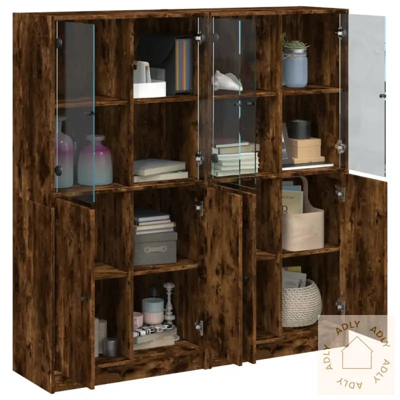 Solid og holdbart materiale: Bokhyllen er laget av konstruert treverk av eksepsjonell kvalitet, kjent for sin glatte overflate og evne til å tåle daglig bruk. Materialet gir styrke og stabilitet, samtidig som det har god motstand mot fuktighet, noe som gjør den ekstra praktisk for norske hjem.Rikelig med oppbevaringsplass: Du får mange rom med god dybde, slik at du enkelt kan holde orden på bøker, dokumenter og annet smått og stort. Dette gjør bokhyllen til et naturlig valg for alle som ønsker system og stil i hverdagen.Stabil og solid topp: Den solide topplaten fungerer perfekt hvis du ønsker å vise frem dekorasjoner, bilder eller dine favoritt-potteplanter – skaper et personlig preg i stua eller kontoret.Praktisk design: Beskytt det du vil holde støvfritt bak de hendige dørene, og med smarte håndtak er det superenkelt å åpne og lukke hyllen når du trenger noe. Praktisk for både daglig bruk og organisering.Advarsel: