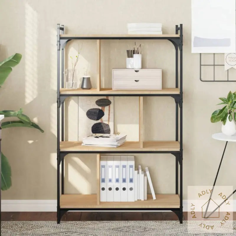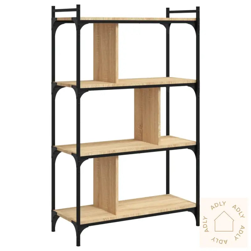 Slitesterkt materiale: Bokhyllen er laget av konstruert treverk med eksepsjonell kvalitet. Den har en glatt overflate som er enkel å rengjøre, og materialet er både sterkt, stabilt og motstandsdyktig mot fuktighet. Dette gjør at du får en bokhylle som holder seg pen lenge, selv i rom hvor luftfuktigheten varierer.Rikelig med oppbevaring: Med god plass til magasiner, bøker, planter, pyntegjenstander og alt annet du ønsker å ha lett tilgjengelig, får du orden samtidig som hjemmet får et løft. Alt holdes oversiktlig og samlet på ett sted, noe som gjør hverdagen litt enklere.Justerbare føtter: De fire justerbare føttene med plastputer sørger for at bokhyllen står stødig, selv på ujevne underlag. Det betyr at du slipper vipping, og du kan være trygg på at innholdet står sikkert – en ekstra fordel på gulv der det kan være små høydeforskjeller.Metallramme: Den solide metallrammen gir hyllen en kul, industriell stil og sørger samtidig for at møbelet er robust og stabilt. Kombinasjonen av sonoma eik og sort metall gir et moderne preg som passer de fleste rom og innredningsstiler.Advarsel: