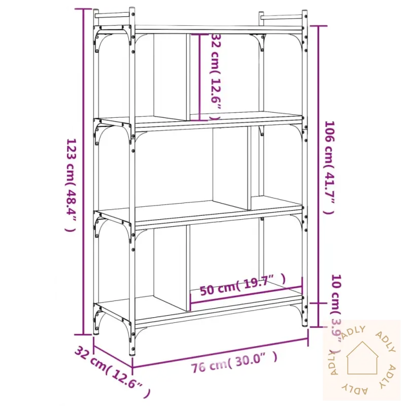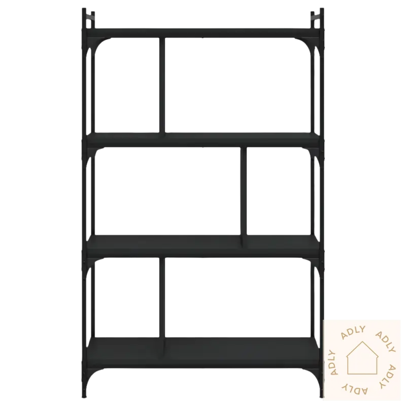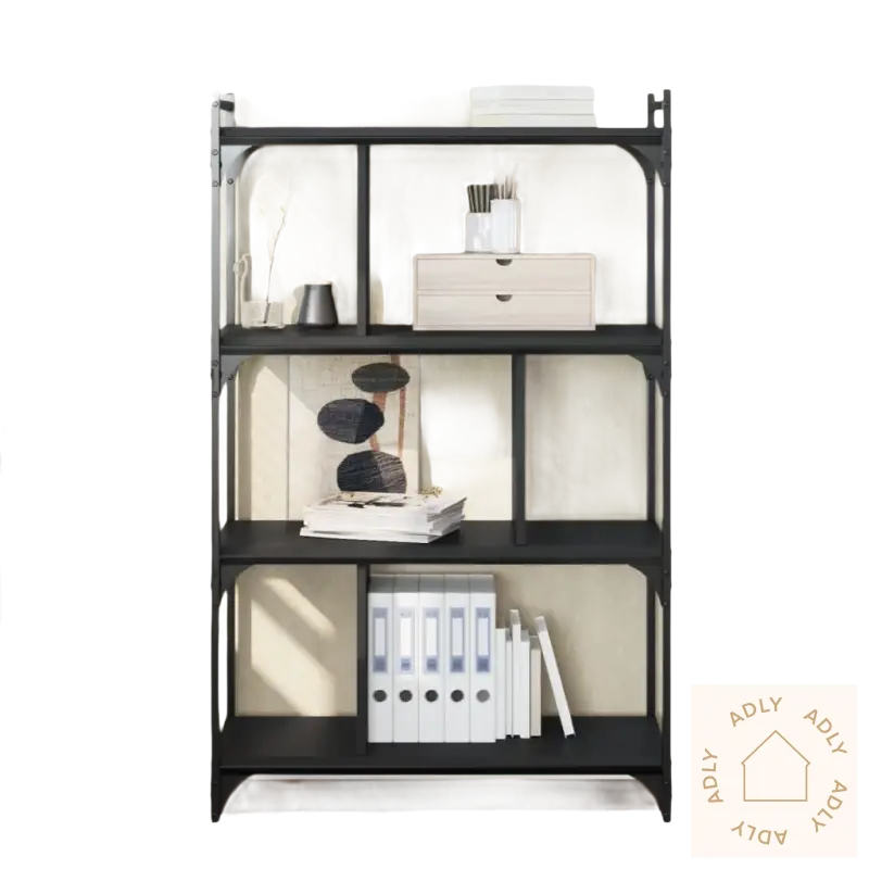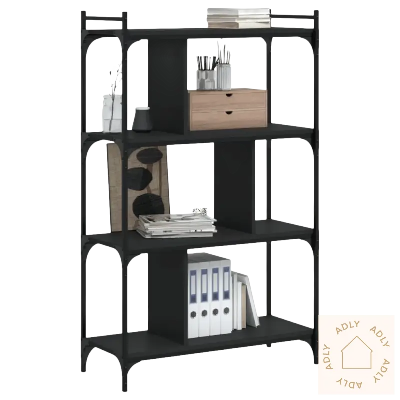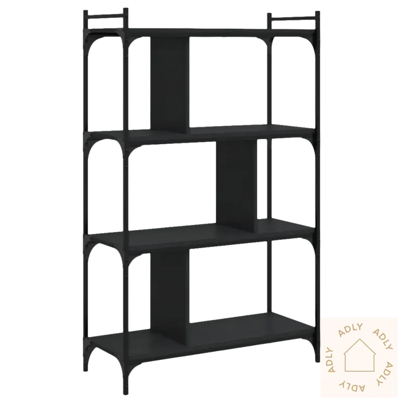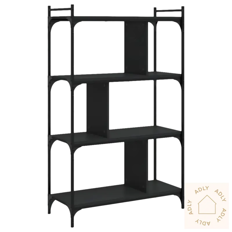 Slitesterkt materiale: Bokhyllen er laget av konstruert treverk som både har glatt overflate og utmerket kvalitet. Materialet sikrer styrke, solid stabilitet og god motstand mot fuktighet, noe som gir en hylle som er lett å vedlikeholde og holder seg pen lenge.Rikelig med oppbevaringsplass: Du får god plass til bøker, magasiner, pyntegjenstander og alt du vil ha organiser og lett tilgjengelig. Hyllens gode volum gjør det enkelt å holde ting i system, uansett om det er på hjemmekontor, stue eller soverom.Justerbare føtter: De fire justerbare føttene med plastbeskyttelse sørger for at hyllen står stødig på ujevnt gulv og gir ekstra stabilitet, uansett hvor du vil plassere den. Praktisk hvis du stadig omorganiserer blant dine møbler til hjemmet.Industriell metallramme: Den solide metallrammen gir ikke bare et moderne, industrielt preg – den øker også hyllens generelle slitestyrke og robusthet, så du kan stole på at bokhyllen varer lenge.Bokhyllen leveres i fargen svart og kombinerer konstruert tre med metall for et stilfullt uttrykk og lang levetid. Med målene 76 x 32 x 123 cm (L x B x H) får du en stående hylle som gir deg maks oppbevaring uten å ta for mye plass. Montering kreves, men det følger med en enkel bruksanvisning så du raskt kan ta bokhyllen i bruk hjemme.