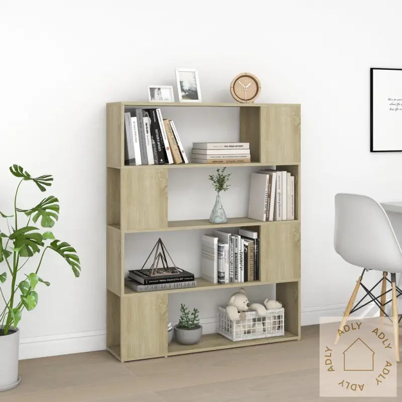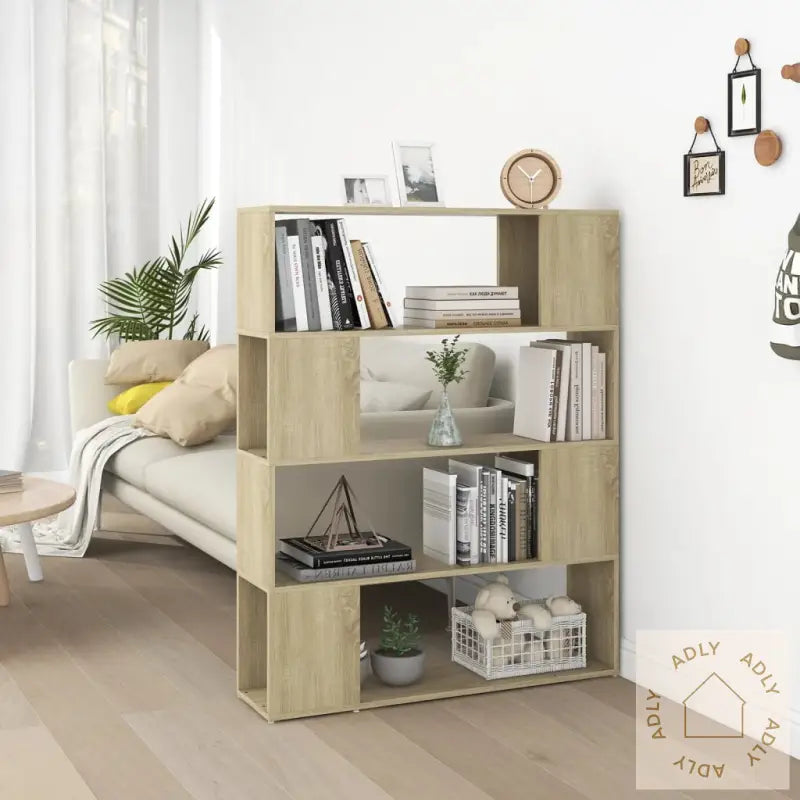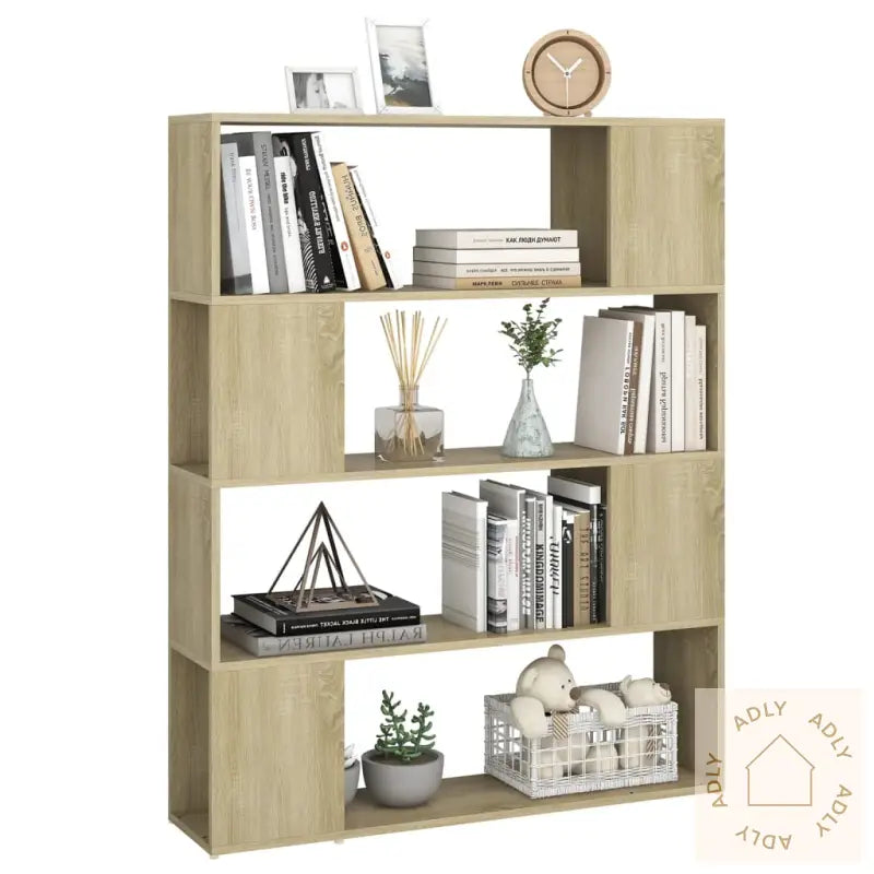 Konstruksjonen er solid og sikrer god stabilitet og holdbarhet, slik at du får glede av bokhyllen i mange år. Med fire romslige hyller får du rikelig lagringsplass til magasiner, bøker, DVD-er, multimediaenheter eller små dekorative gjenstander – perfekt for å holde ting organisert og lett tilgjengelig. Du kan også bruke den som romdeler for å skape en koselig lesekrok, spesielt hvis du plasserer den på et sted med godt lys og lar favorittboken ligge klar for neste lesestund. Overflaten i sonoma eik gir et moderne og varmt uttrykk, samtidig som den tåler daglig bruk og lett kan matches med andre møbler til hjemmet eller hagemøbler.