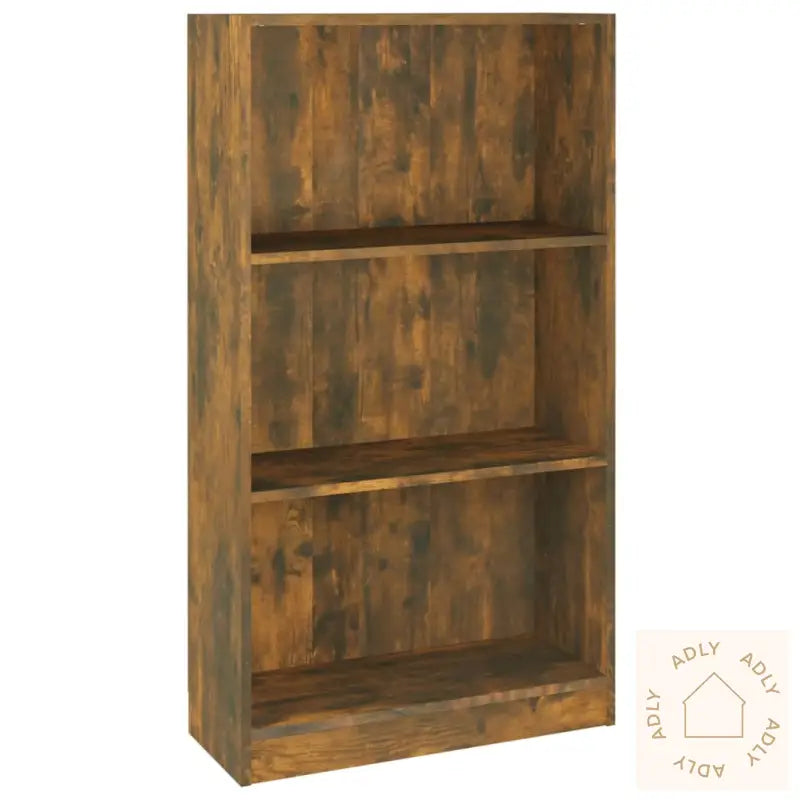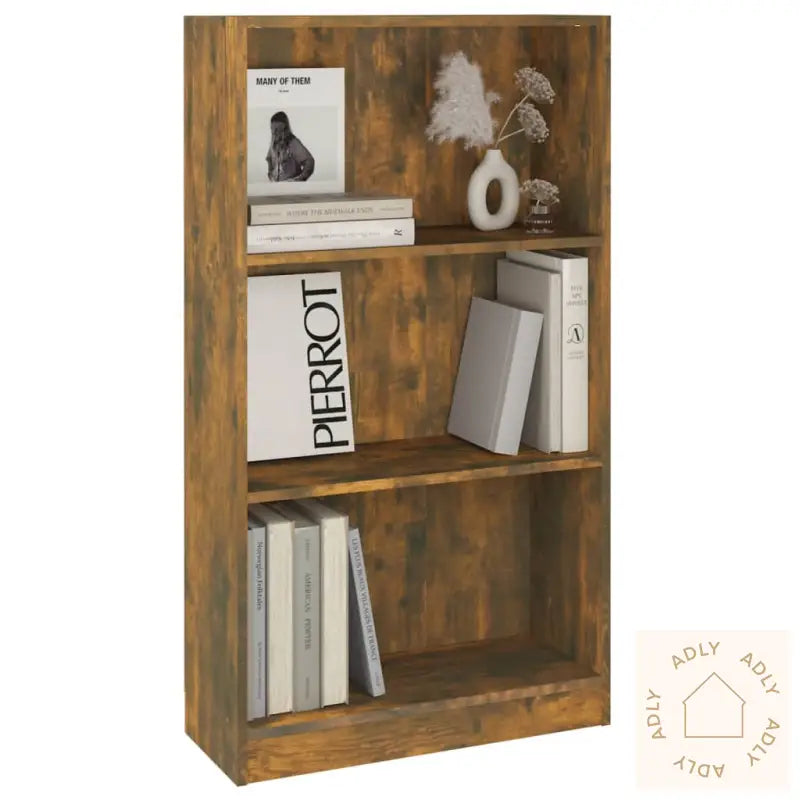Bokhyllen har 3 romslige hyller som gir deg rikelig med plass til å organisere bøker, magasiner, DVDer, multimediautstyr og pyntegjenstander. Du får alt på ett sted, lett tilgjengelig og oversiktlig – ideelt når du vil skape en ryddig stemning og et personlig preg i stua, gangen eller på kontoret.Takket være det stilrene designet passer denne flerfunksjonelle bokhyllen enkelt inn sammen med andre møbler og interiørstiler. Den fungerer godt både som oppbevaring i gangen og i alle typer oppholdsrom, og gir deg fleksibilitet etter behov.Bokhyllen er laget av robust konstruert tre, noe som gjør den slitesterk og svært enkel å holde ren – du tørker bare overflatene med en lett fuktig klut ved behov. Dette gjør den til et praktisk valg som holder seg pen lenge.Advarsel: