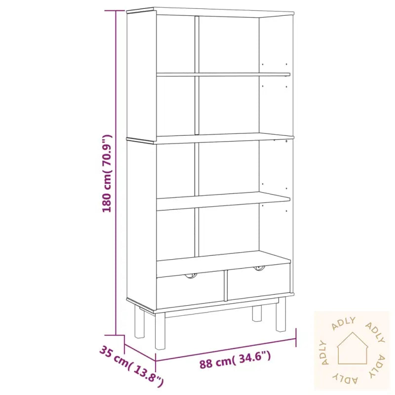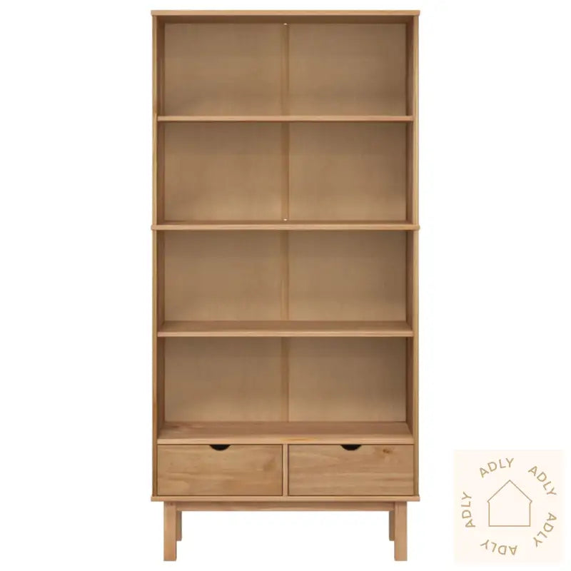 Heltre furu: Laget av heltre furu – et slitesterkt og naturlig materiale kjent for sitt vakre, rette åremønster og rustikke knuter. Dette gir hvert møbel et unikt preg og tilfører en varm atmosfære til rommet.Stabil ramme: Solid treramme sørger for langvarig stabilitet og holdbarhet, så du kan stole på denne bokhyllen i mange år fremover.Rikelig med lagringsplass: Med 3 romslige hyller og 2 praktiske skuffer får du god plass til å samle bøker, blader, filmer, multimedia og personlige pyntegjenstander. Alt holdes pent organisert og lett tilgjengelig.ADVARSEL:
