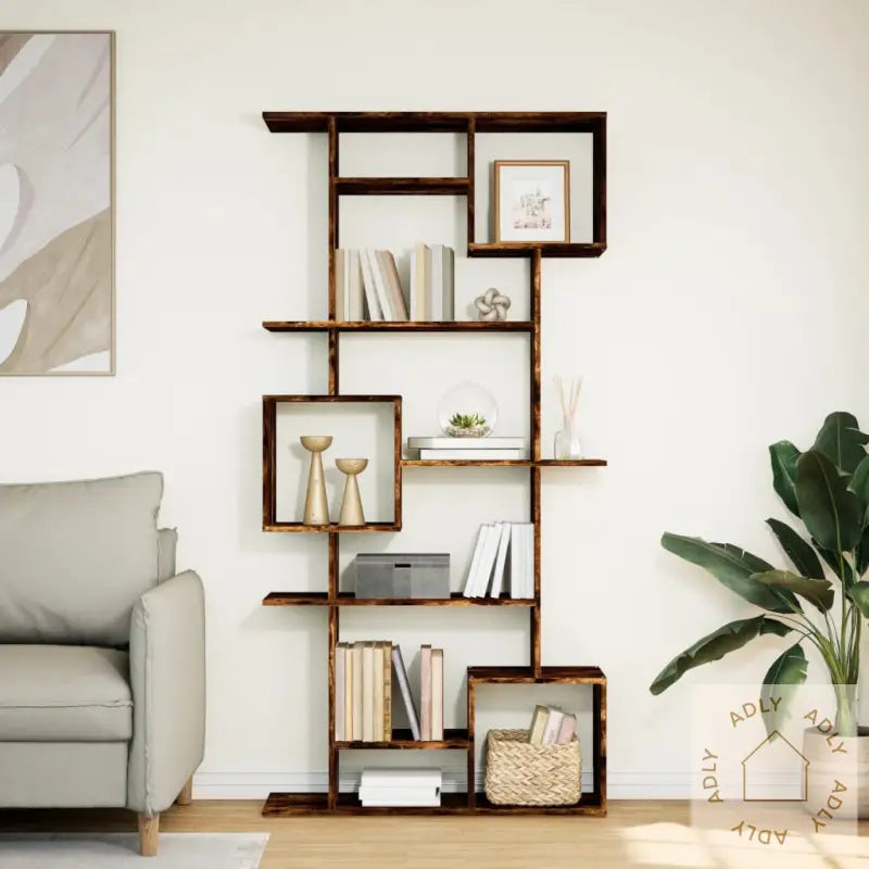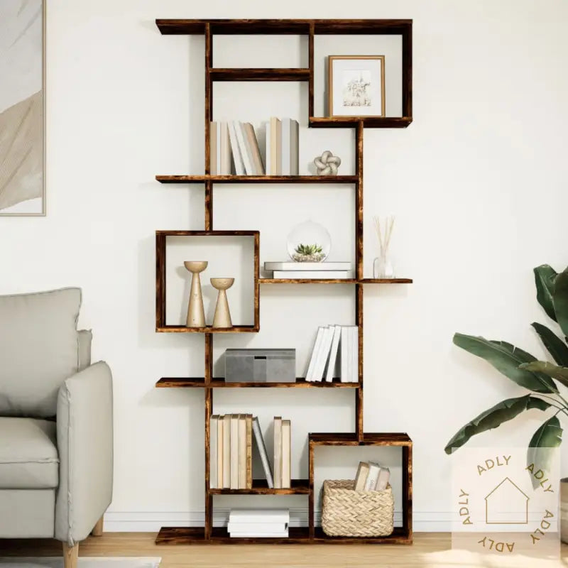 Farge: røkt eikMateriale: konstruert treMål: 92 x 29 x 188 cm (B x D x H)Med 9 åpne romMontering kreves: jaLegal Documents: