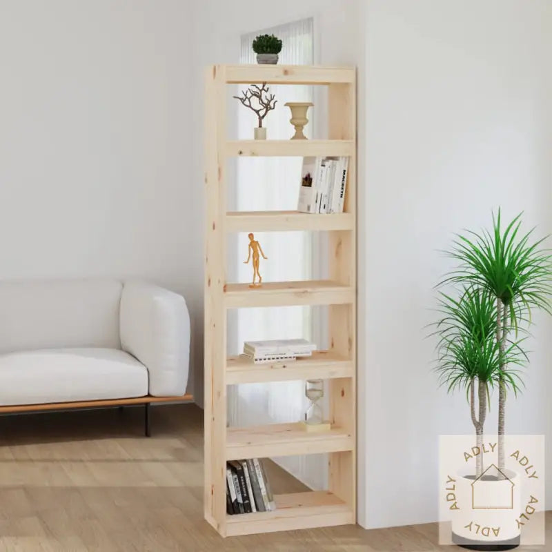 Bokhyllen er laget av heltre furu, noe som gir både stabilitet og lang levetid, samtidig som det naturlige trematerialet gir hyllen et varmt og innbydende uttrykk. Med seks store, åpne rom har du rikelig med lagringsplass slik at alt fra bøker og DVDer til pyntegjenstander og planter får sin egen plass, lett tilgjengelig når du trenger det. I tillegg er hyllen allsidig nok til å kunne brukes som en romdeler mellom ulike soner i stua, gangen eller andre oppholdsrom – dette gjør den ideell for deg som ønsker fleksible og smarte løsninger til hjemmet.