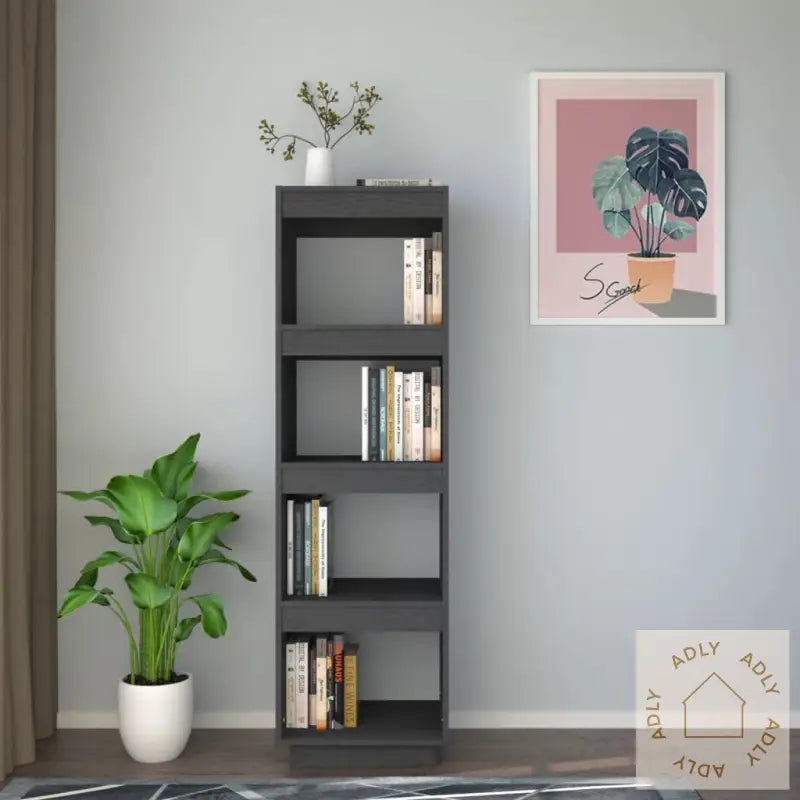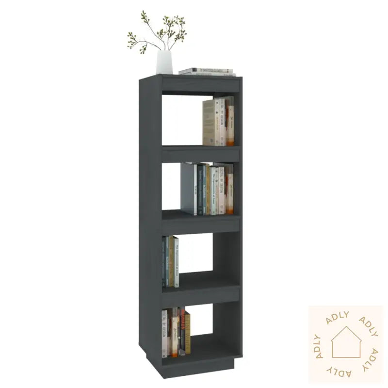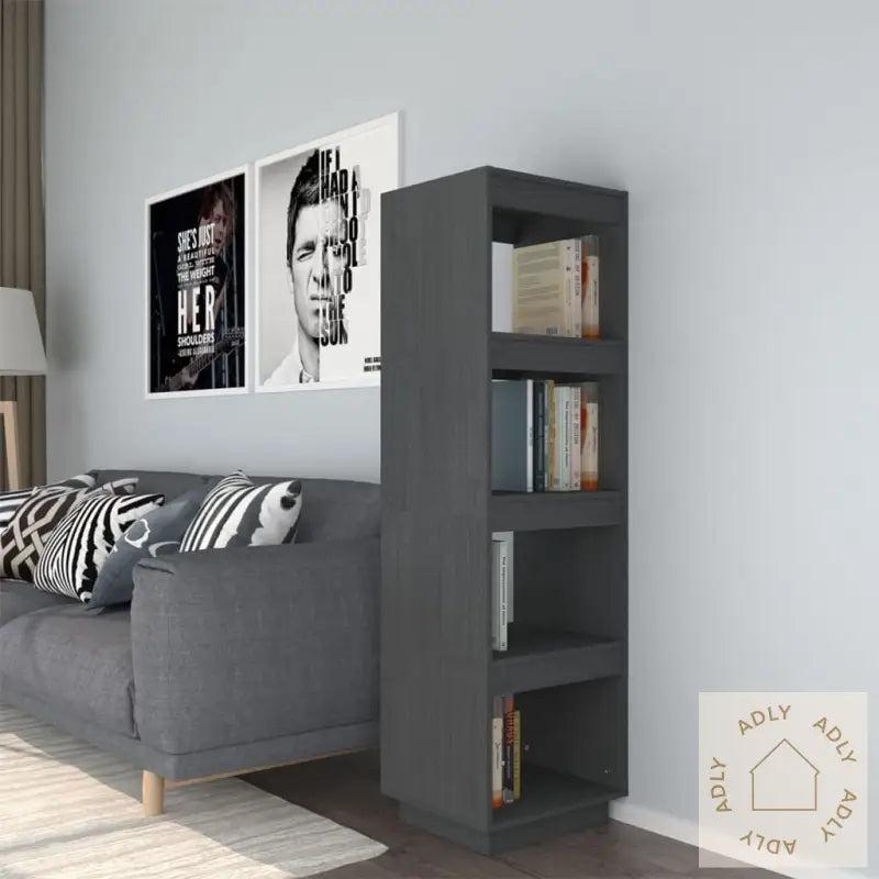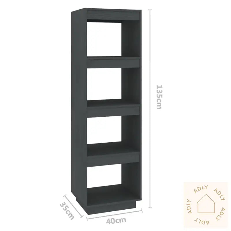 Farge: gråMateriale: heltre furuMål: 40 x 35 x 135 cm (B x D x H)Kan brukes som bokhylle eller romdelerMontering kreves: ja
