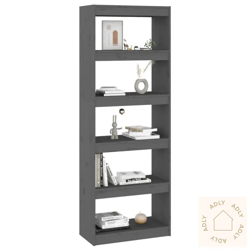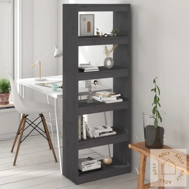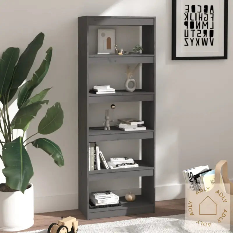 Farge: gråMateriale: heltre furuMål: 60 x 30 x 167,5 cm (B x D x H)Kan brukes som bokhylle eller romdelerMontering kreves: ja