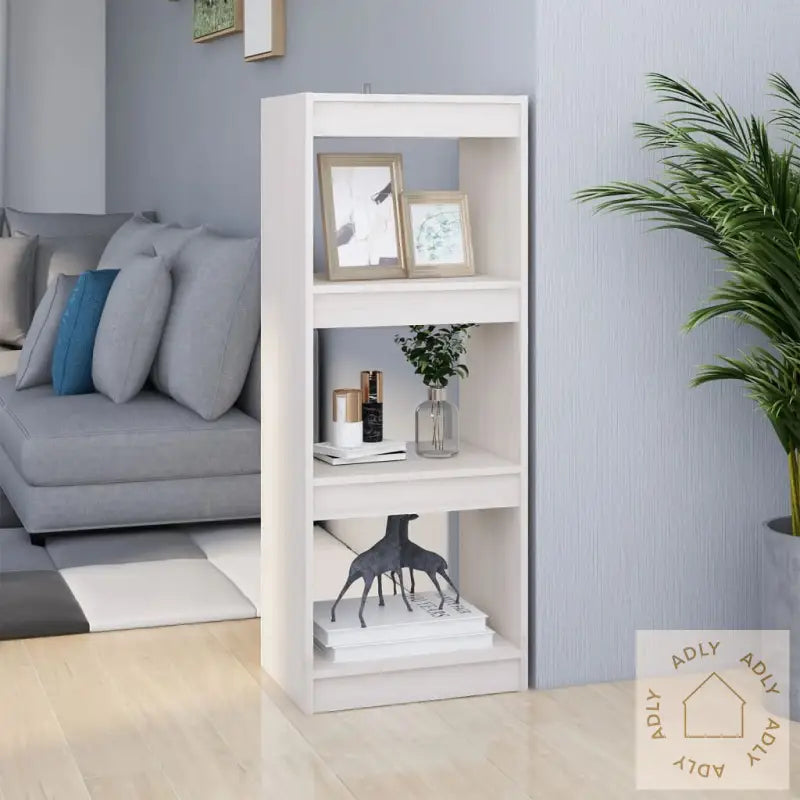 Farge: hvitMateriale: heltre furuMål: 40 x 30 x 103,5 cm (B x D x H)Kan brukes som bokhylle eller romdelerMontering kreves: jaADVARSEL: For å forhindre at produktet velter, må medfølgende festemidler for vegg brukes.