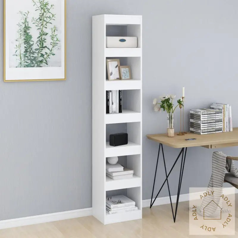 Farge: hvitMateriale: konstruert treMål: 40 x 30 x 198 cm (B x D x H)Kan brukes som bokhylle eller romdelerMontering kreves: ja