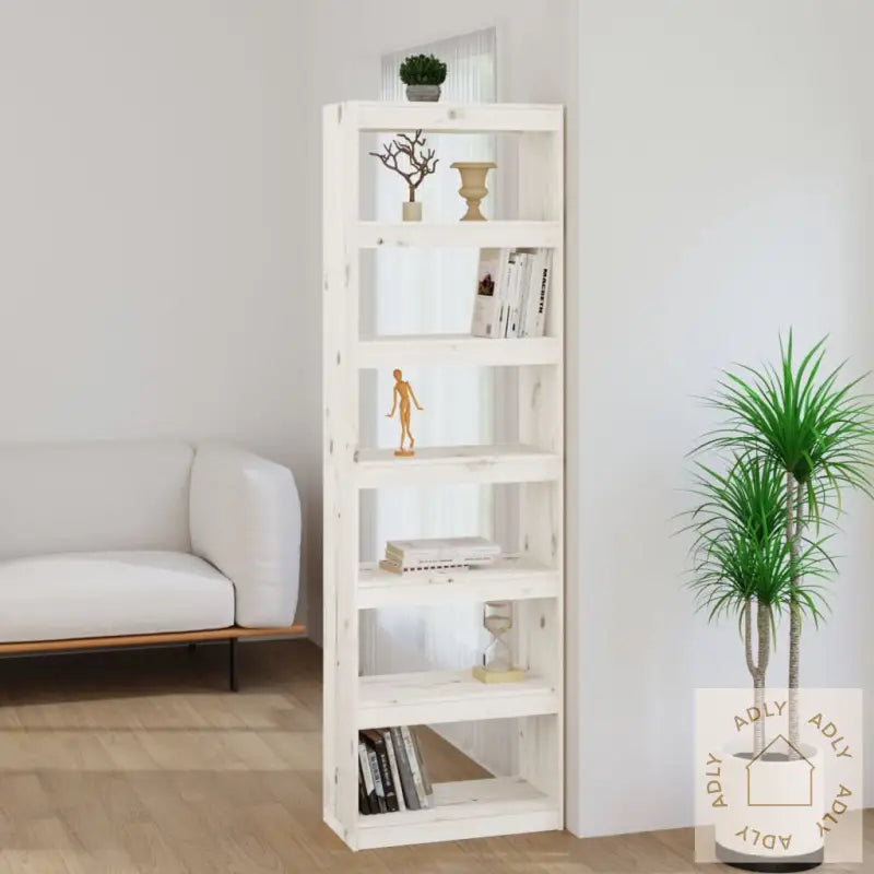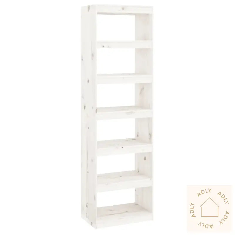 Farge: hvitMateriale: heltre furuMål: 60 x 30 x 199,5 cm (B x D x H)Kan brukes som bokhylle eller romdelerMontering kreves: jaADVARSEL: For å forhindre velting må dette produktet brukes med veggfesteenheten som følger med