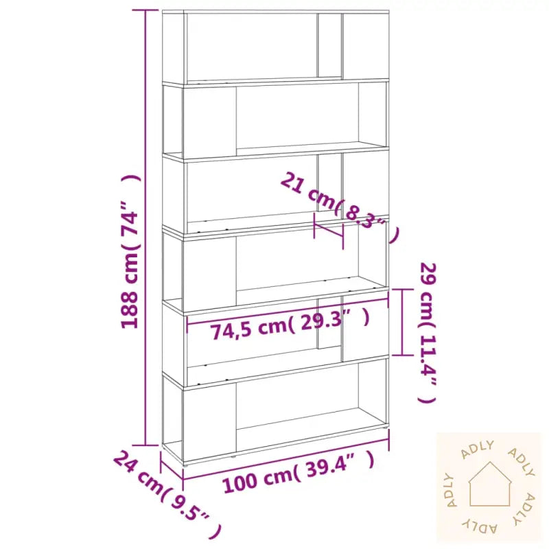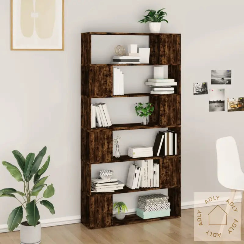 Slitesterkt materiale: Det konstruerte treverket brukt i denne bokhyllen gjør den solid og gir langvarig bruksglede. Den glatte finishen gjør også at hyllen ser like bra ut som den fungerer, og bidrar til å skape en koselig atmosfære blant dine andre møbler.Rikelig med lagringsplass: Med 6 store rom får du god plass til å organisere alt fra bøker, blader og DVD-er til multimediaenheter og dekorative elementer. Alt holdes ryddig og lett tilgjengelig – perfekt enten du elsker å ha det ryddig hjemme eller vil vise frem favorittbøkene dine.Allsidig løsning: Hyllen kan brukes både som en tradisjonell bokhylle og som romdeler. Dette gir deg fleksibilitet når du skal innrede hjemmet, og gjør at du enkelt kan skape forskjellige soner – spesielt smart hvis du ønsker å dele opp større rom eller ønsker praktiske løsninger sammen med andre typer møbler eller hagemøbler.Lett å rengjøre: Overflaten på bokhyllen tørkes enkelt ren med en fuktig klut, så det er ingen grunn til å bekymre seg for støv eller smuss – mer tid til å nyte de nye møblene dine.Advarsel: