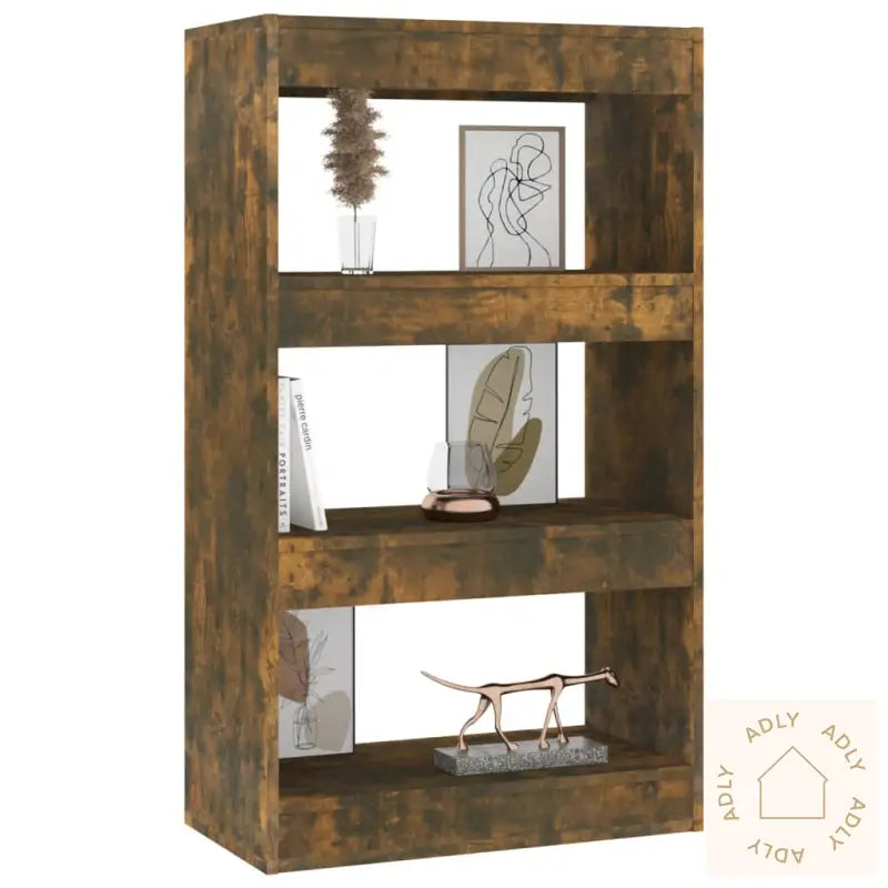 Farge: røkt eikMateriale: konstruert treMål: 60 x 30 x 103 cm (B x D x H)Kan brukes som bokhylle eller romdelerMontering kreves: jaADVARSEL: For å forhindre at produktet velter, må medfølgende festemidler for vegg brukes.