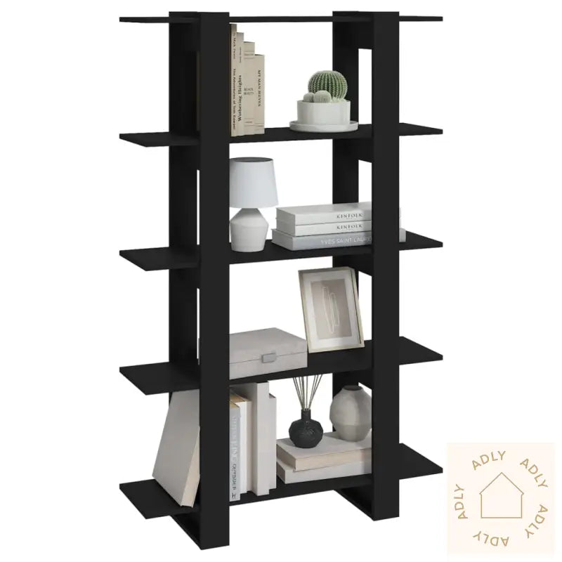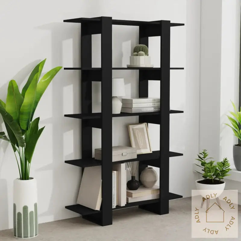 Farge: svartMateriale: konstruert treSamlet mål: 100 x 30 x 160 cm (B x D x H)Mål hver hylle: 100 x 27 x 35 cm (B x D x H)Kan brukes både som bokhylle og romdelerMontering kreves: ja