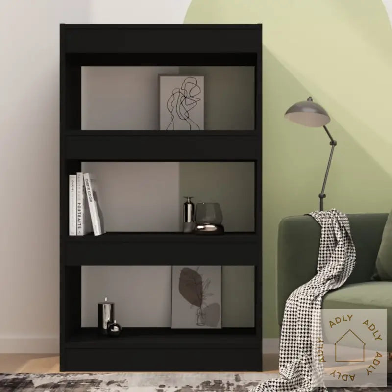 Farge: svartMateriale: konstruert treMål: 60 x 30 x 103 cm (B x D x H)Kan brukes som bokhylle eller romdelerMontering kreves: jaADVARSEL: For å forhindre at produktet velter, må medfølgende festemidler for vegg brukes.