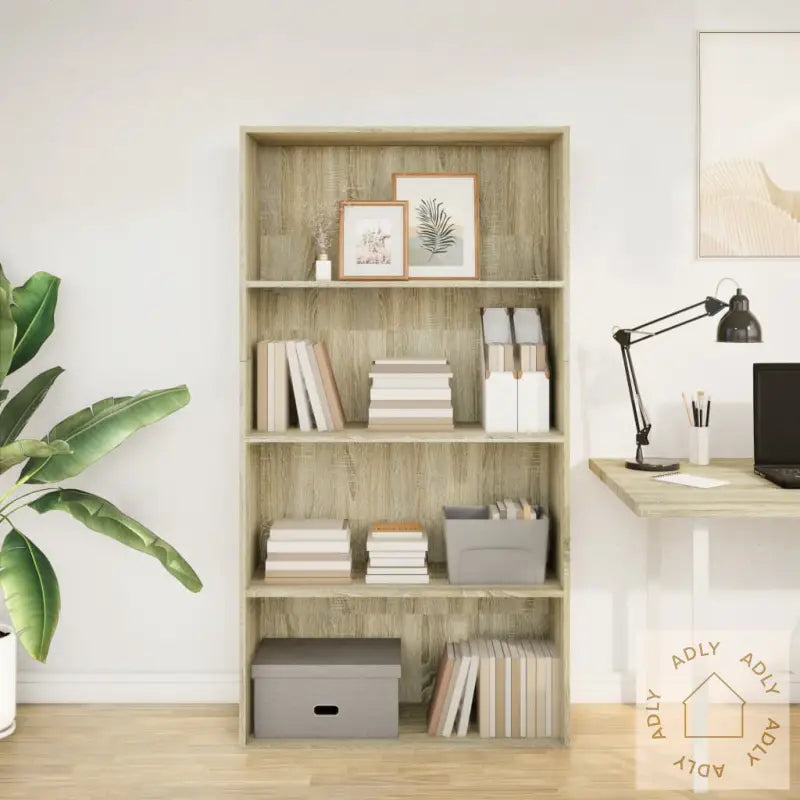 Holdbart materiale: Denne bokhyllen er laget av konstruert treverk som gir en jevn og eksklusiv finish. Materialet byr ikke bare på styrke og lang levetid, men sikrer også god stabilitet og motstand mot fukt. Dette gjør den til et solid valg der holdbarhet er viktig.Rikelig med oppbevaringsplass: Med sine åpne hyller får du god plass til å stille ut alt fra favorittbøker til dekor og multimediautstyr. Perfekt for deg som liker å holde ting ryddig og samlet, samtidig som alt er enkelt tilgjengelig akkurat der du trenger det. Bokhyllen fungerer like godt i stua som på soverommet eller hjemmekontoret, og gir deg fleksibel lagring for alle slags behov.Enkelt vedlikehold: Den glatte overflaten gjør at støv og smuss ikke setter seg fast, og hyllen rengjøres raskt med en fuktig klut. Praktisk for hverdagen og krever lite vedlikehold slik at du kan bruke tiden din på det som betyr mest.Fleksibel bruk: Bokhyllen er både allsidig og lett å kombinere med andre møbler eller hagemøbler i sonoma eik, og glir sømløst inn i ulike miljøer – enten det er gangen, soverommet eller kontoret. Den tidløse designen gjør at den passer inn i de fleste interiørstiler.Godt å vite: