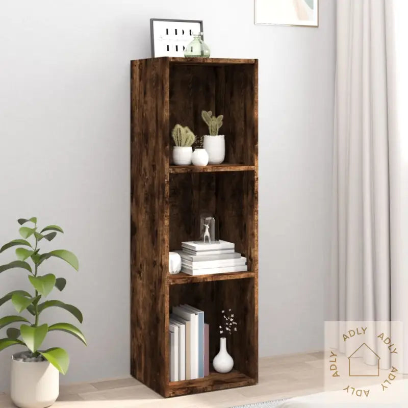 Slitesterkt materiale: Det konstruerte treverket gir hyllen en førsteklasses finish med en glatt, moderne overflate, samtidig som det sikrer styrke, stabilitet og god motstand mot fuktighet. Det betyr at denne bokhyllen tåler daglig bruk i mange år fremover.Rikelig lagringsplass: Med 3 rom gir denne bokhyllen deg generøse oppbevaringsmuligheter, slik at du alltid har plass til bøker, magasin, DVDer, multimediaenheter eller pyntegjenstander. Alt holdes ryddig, organisert og lett tilgjengelig.Fleksibel bruk: Denne bokhyllen passer like godt som utstillingshylle i stuen som en klassisk bokhylle. Du kan også plassere den horisontalt og bruke den som TV-benk, noe som gir deg mange muligheter til å tilpasse innredningen etter behov. Passer perfekt sammen med andre møbler fra vårt sortiment for en helhetlig stil hjemme.Enkel rengjøring: Med sin glatte overflate er skapet svært enkelt å holde rent – bare tørk over med en fuktig klut, så ser det nytt ut igjen.Advarsel: