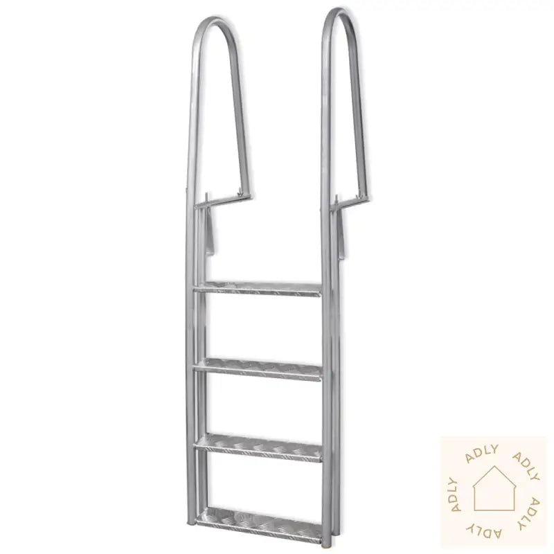 Med vår praktiske 4-stegs stige får du en trygg og komfortabel måte å gå på eller av brygga eller bassengkanten, enten du vil ta et bad eller bare nyte sommeren. Den solide konstruksjonen i værbestandig aluminium gir deg et produkt som tåler både sol, regn og saltvann, perfekt for norske forhold. Stigen har en maksimal belastning på 100 kg, så den passer for de aller fleste. Det gjør den ideell både til utendørsmøbler ved bassenget og som tillegg til dine hagemøbler, men den kan også brukes innendørs der det trengs.