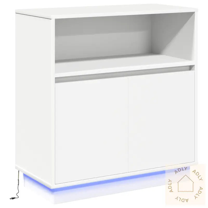 Masse lagringsplass: Med to dører som åpner for romslige hyller, får du god plass til å oppbevare servise, glass og store serveringsfat. Alt du trenger til hverdags eller når du har gjester på besøk, er enkelt tilgjengelig – dette gjør det lett å holde spisestuen organisert. Det smarte og fleksible designet balanserer funksjonalitet og stil, og passer perfekt enten du har moderne eller klassisk innredning.Innebygd belysning: LED-lysene inne i skapet gir et eksklusivt preg og setter stemningen i rommet. Med justerbar blå lysfarge kan du fremheve dekorobjekter eller la buffeten bli et elegant blikkfang i spiserommet. Belysningen gjør det enkelt å skape en koselig atmosfære – ideelt både til rolige middager og større sosiale sammenkomster.Justerbare hyller: De justerbare hyllene gir deg full frihet til å tilpasse oppbevaringen etter dine behov. Du kan enkelt gjøre plass til både høye vaser, små skåler eller store fat. Med slike fleksible løsninger får du møbler til hjemmet som vokser med deg og dine behov – enten du ommøblerer eller oppgraderer interiøret.Stilig design: Den rene hvite overflaten og de nøye utvalgte detaljene gir buffeten et moderne og elegant uttrykk. Den minimalistiske looken gjør at den enkelt passer inn og fremhever andre elementer i rommet, uten å ta over for mye. Denne buffeten fungerer både som en praktisk oppbevaringsløsning og som et stilrent møbel som virkelig løfter helhetsinntrykket.Kvalitetskonstruksjon: Buffeten er laget av slitesterk MDF med matt finish – det gir både en solid konstruksjon og en eksklusiv følelse. Du får et møbel som tåler daglig bruk og holder seg pent lenge, slik at dette blir en smart langtidinvestering. Den stødige byggemåten gir deg trygghet for at buffeten varer i mange år fremover.Farge: HvitLysfarge: BlåForm: RektangulærMateriale: MDFFinish: MattBruk: Kun innendørsAntall Dører: 2Deksel Inkludert: NeiRom: SpisestueStrømkilde: StikkontaktBatterier Inkludert: NeiPærebase: E27Overflatehøyde: 2 cmSvogger: NeiMerke: Leveransen Inneholder: Buffet med LED-lamperMontering Kreves: JaAnbefalt Antall Personer for Montering: 2