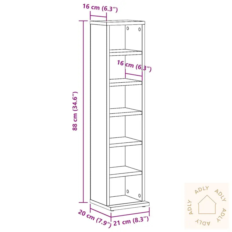 Robust materiale: Hyllen er laget av konstruert tre i høy kvalitet, kjent for sin glatte overflate, holdbarhet og slitestyrke. Materialet tåler fuktighet og daglig bruk, samtidig som det er enkelt å vaske over med en fuktig klut. Dette gir deg et møbel som varer lenge, enten du bruker det til musikken din eller annen oppbevaring.Rikelig med lagringsplass: De åpne hyllene gir god plass til CD-er, DVD-er og Blu-ray-plater, men er også supre til alt av tilbehør – enten det er småting, dekorgjenstander eller elektronikkdeler. Her får du oversiktlig lagring, og samlingen din vises frem på en stilren måte.Flerfunksjonelt skap: Denne hyllen passer ikke bare til musikkrommet eller stua, men fungerer også flott som arkivskap på hjemmekontoret eller oppbevaringsskap på soverommet. Bruk den til å organisere dokumenter, bøker, bilder eller andre ting du trenger å ha lett tilgjengelig, og integrer den enkelt med andre møbler for en ryddig hjemmestil.Advarsel: