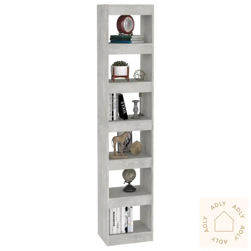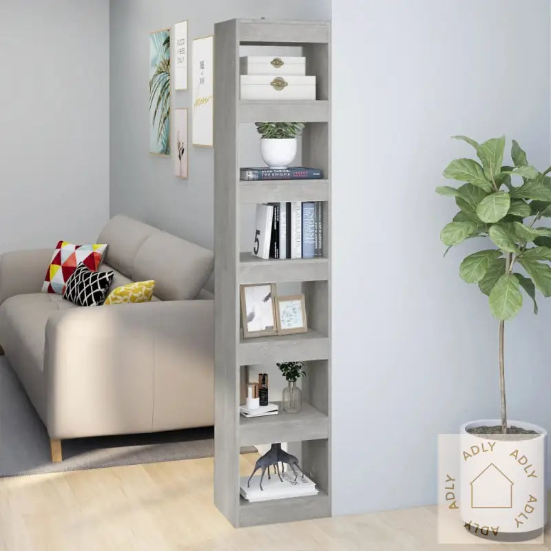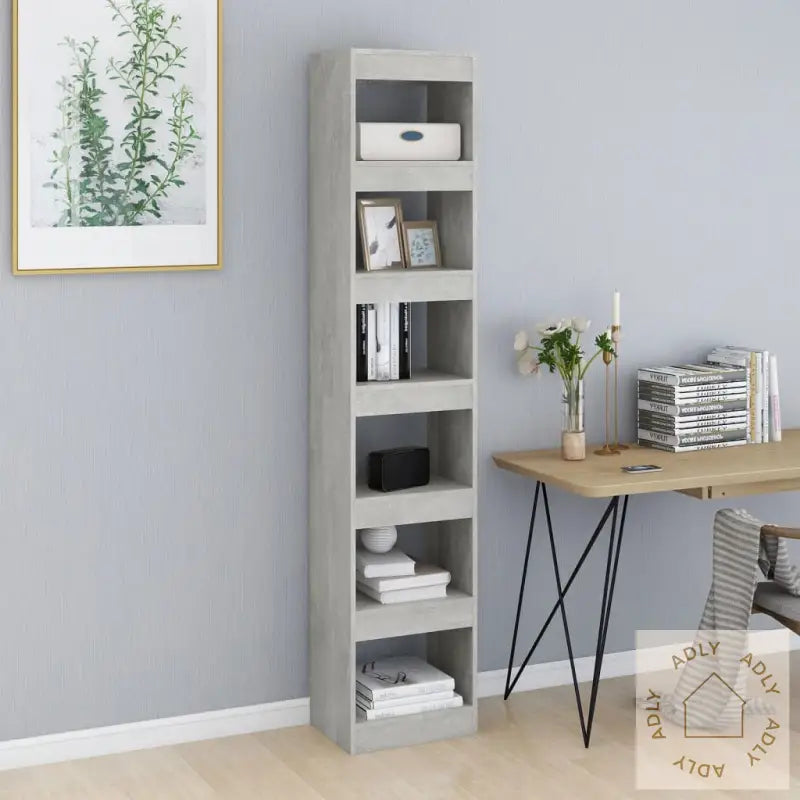 Farge: betonggråMateriale: konstruert treMål: 40 x 30 x 198 cm (B x D x H)Kan brukes både som bokhylle og romdelerMontering kreves