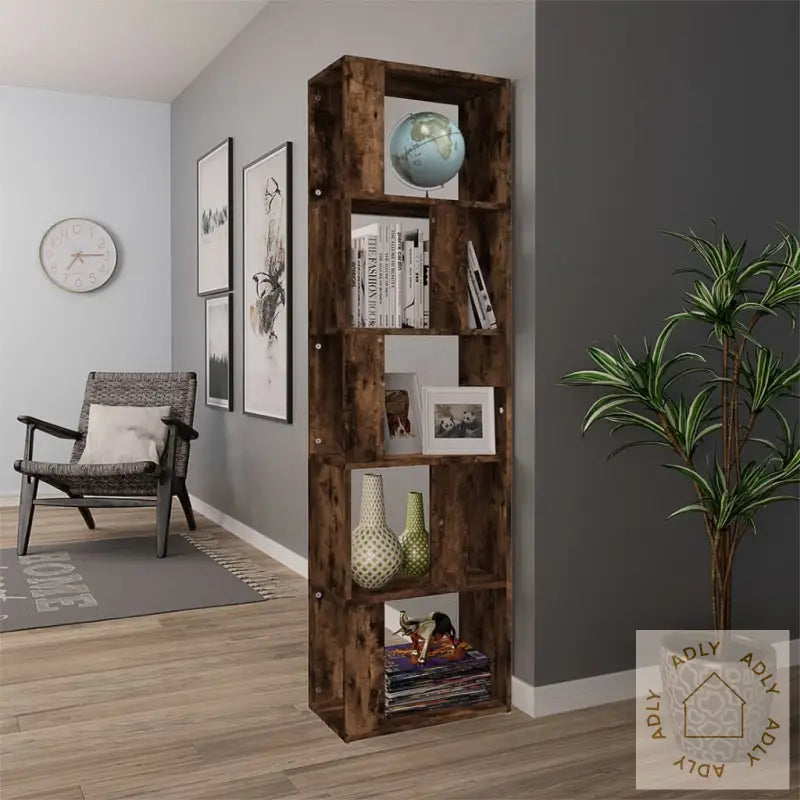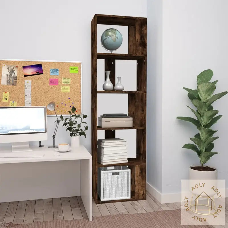 Solid materiale: Bokhyllen er laget av konstruert tre av høy kvalitet med en jevn og slitesterk overflate. Materialet gir god styrke og stabilitet, og sørger for at møbelet tåler daglig bruk. I tillegg er det motstandsdyktig mot fuktighet, noe som bidrar til lang levetid og minimal vedlikehold.Rikelig med lagringsplass: Med sine mange hyller gir bokhyllen deg rikelig plass til å oppbevare bøker, magasiner, DVD-er, multimediautstyr og andre pyntegjenstander. Det hjelper deg å holde alt organisert og lett tilgjengelig, enten du trenger ekstra oppbevaring på stua, kontoret eller soverommet. Kompletter dine øvrige møbler med denne praktiske løsningen.Allsidig funksjon: Bokhyllen fungerer også utmerket som en romdeler, slik at du kan skille ulike soner i hjemmet på en smart og elegant måte. Dette gjør bokhyllen til et fleksibelt valg – like nyttig i gangen som i andre oppholdsrom.Advarsel: