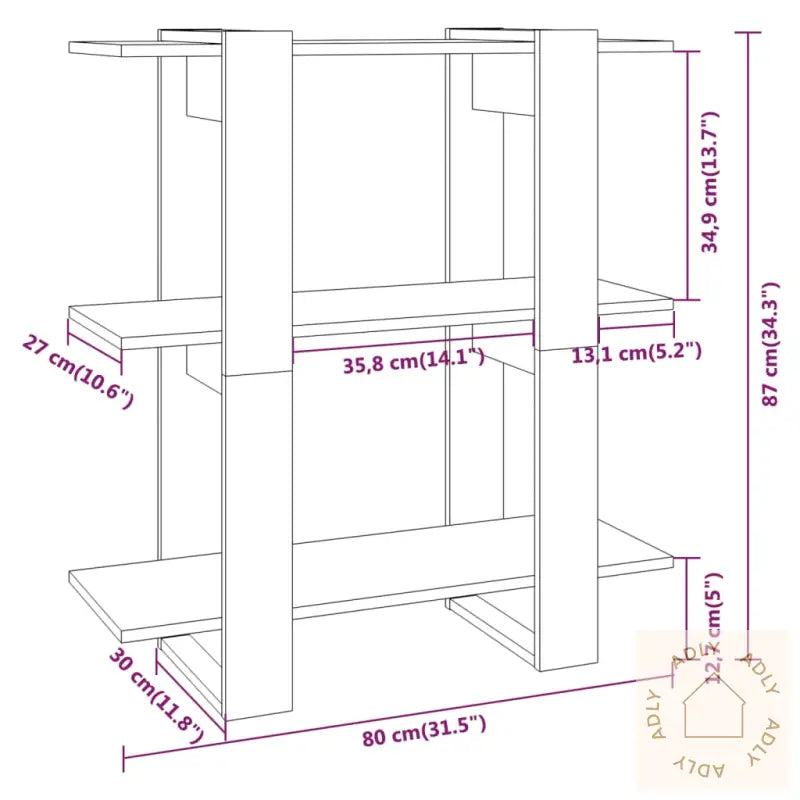 Farge: røkt eikMateriale: konstruert treMål: 80 x 30 x 87 cm (B x D x H)Kan brukes både som bokhylle og som romdeler for fleksibel innredningMontering kreves: jaADVARSEL: For å forhindre at produktet velter, må medfølgende festemidler for vegg brukes.