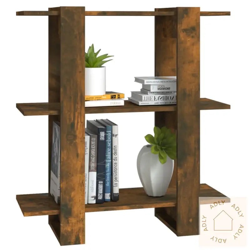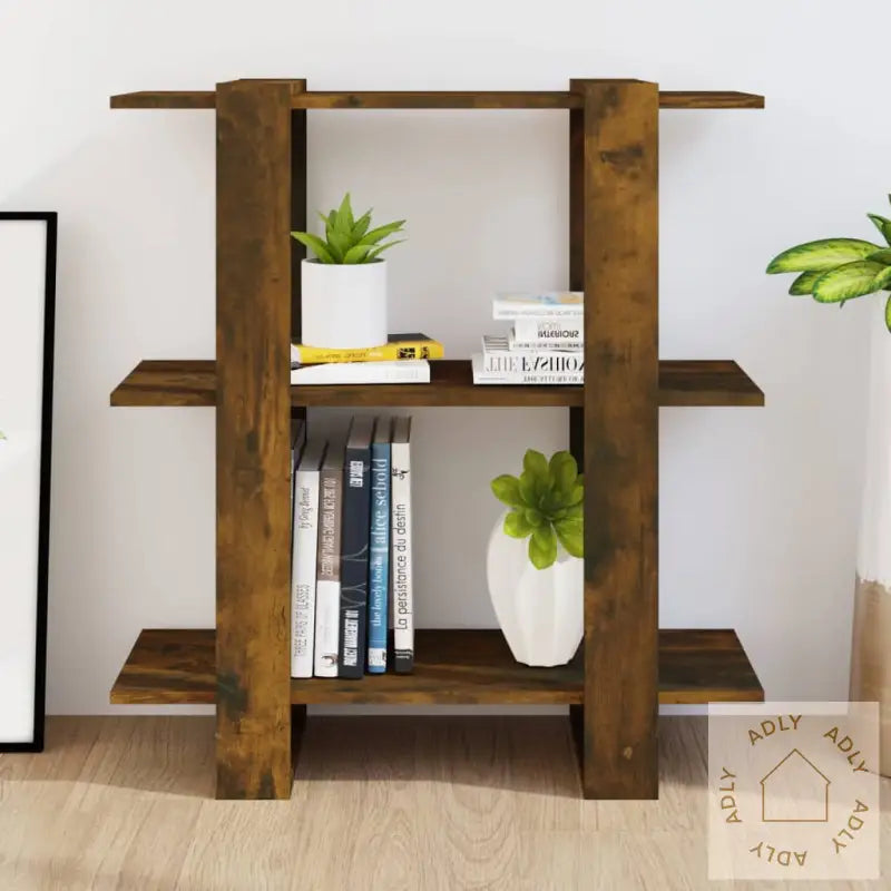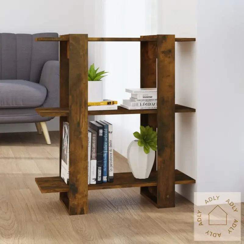 Bokhyllen kommer i en lekker farge av røkt eik og er laget av konstruert tre, noe som gir den både et stilig utseende og lang holdbarhet. Takket være det allsidige designet kan denne bokhyllen også brukes som romdeler, slik at du enkelt kan skape ulike soner i entreen, stuen eller andre oppholdsrom. Den passer like godt sammen med ulike typer møbler og utfyller alt fra moderne til mer tradisjonelle interiørstiler. Rengjøringen er enkel, bare bruk en fuktig klut dersom det skulle komme støv eller smuss på overflaten.