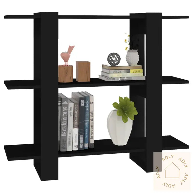 Farge: svartMateriale: konstruert treSamlet mål: 100 x 30 x 87 cm (B x D x H)Mål hver hylle: 100 x 27 x 35 cm (B x D x H)Kan brukes både som tradisjonell bokhylle eller smart romdelerMontering kreves: jaADVARSEL: For å sikre at produktet står trygt og stabilt, må de medfølgende festemidlene til vegg benyttes.