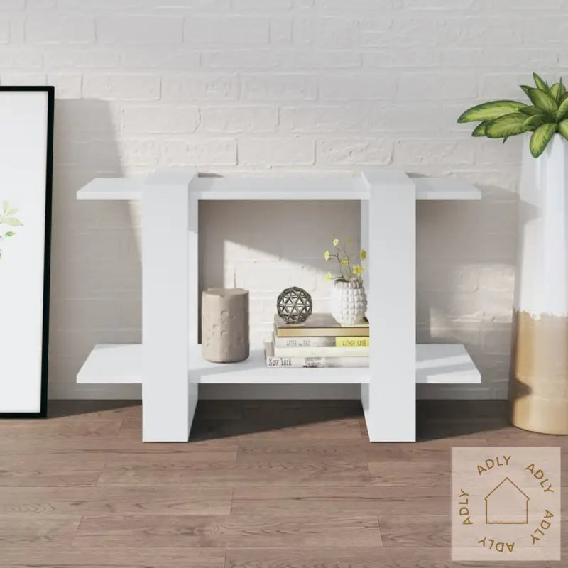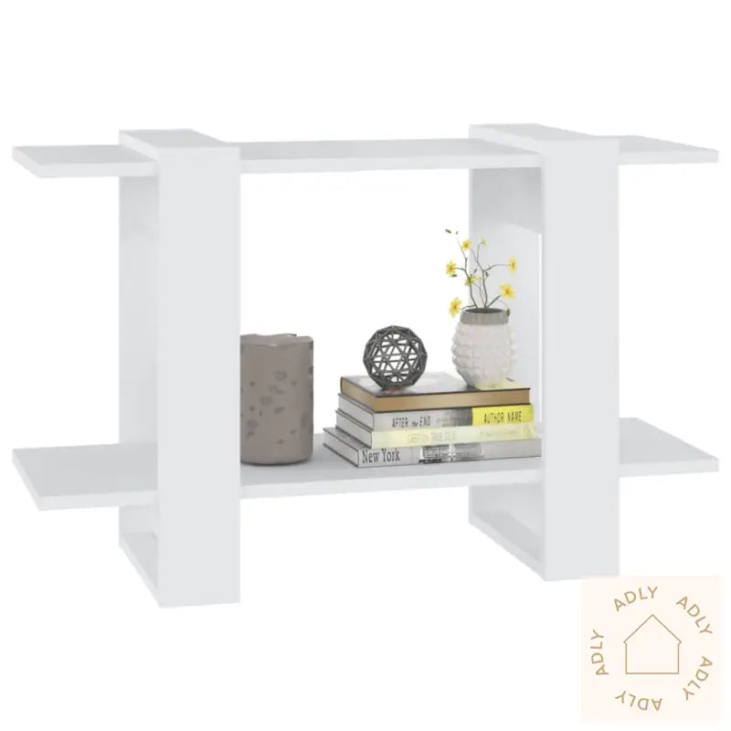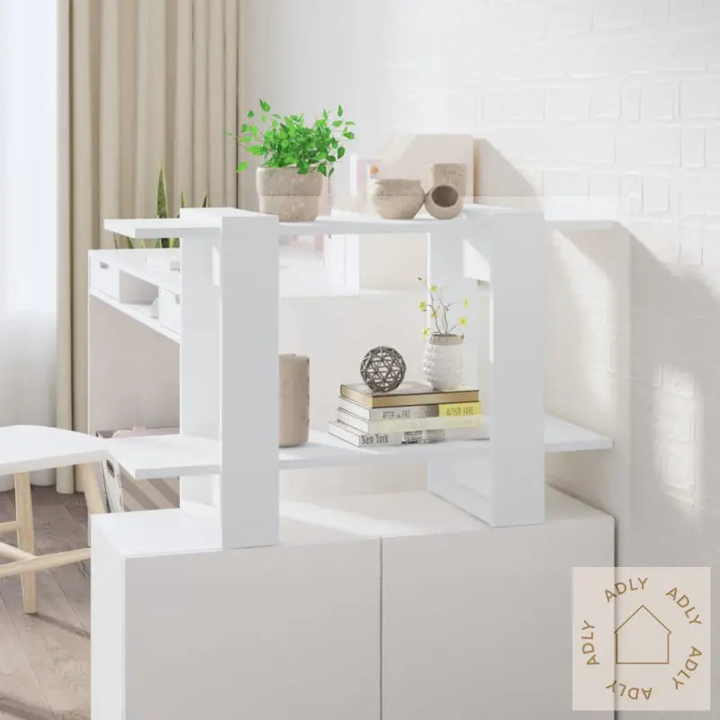 Farge: hvitMateriale: konstruert treSamlet mål: 80 x 30 x 51 cm (B x D x H)Mål hver hylle: 80 x 27 cm (B x D)Kan brukes som bokhylle eller romdeler, og utfyller både moderne og klassiske møbelvalgMontering kreves: jaADVARSEL: For økt sikkerhet anbefales det å bruke de medfølgende festemidlene til vegg for å forhindre at bokhyllen velter.
