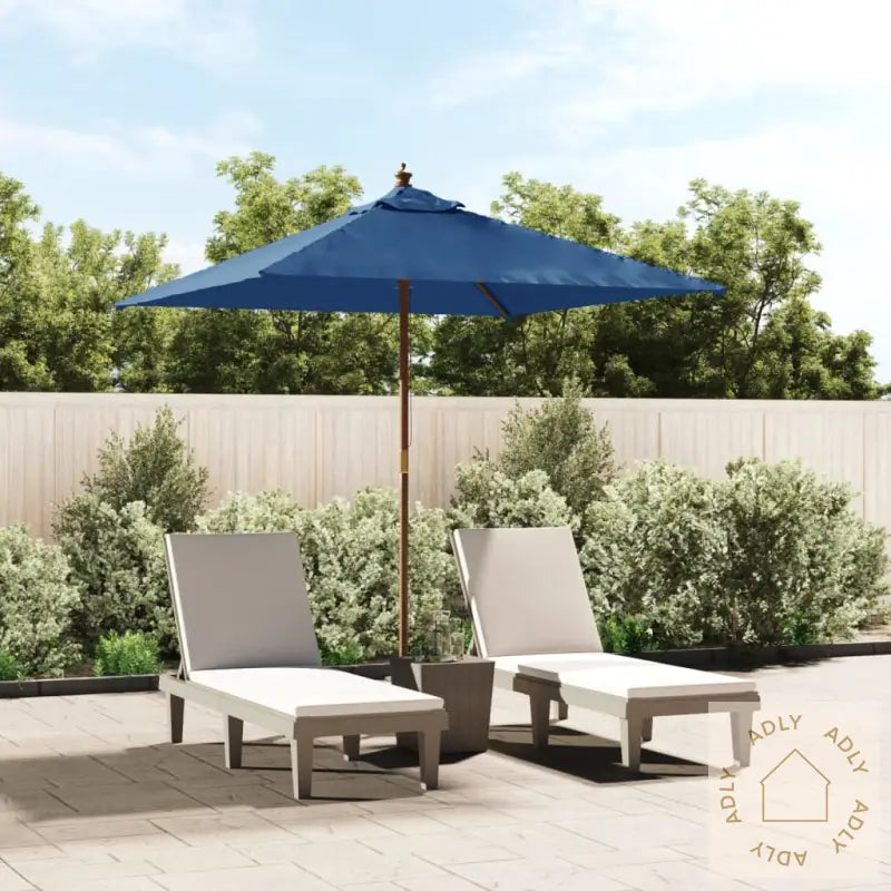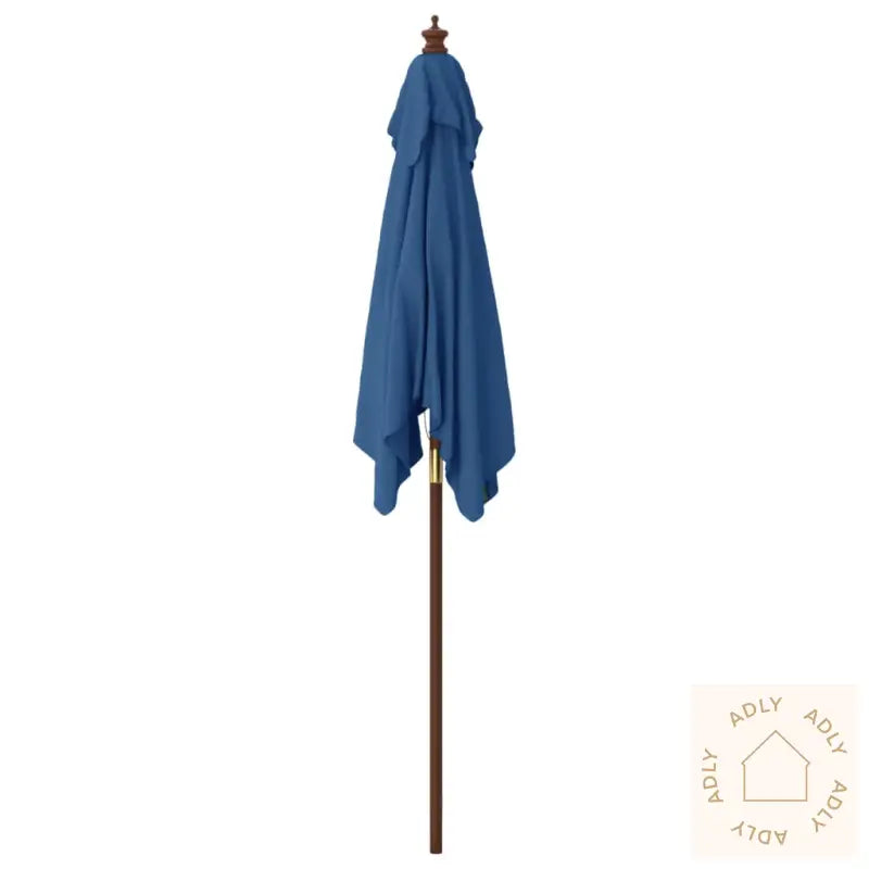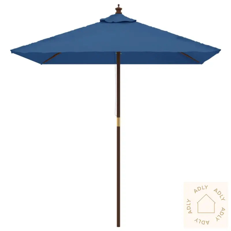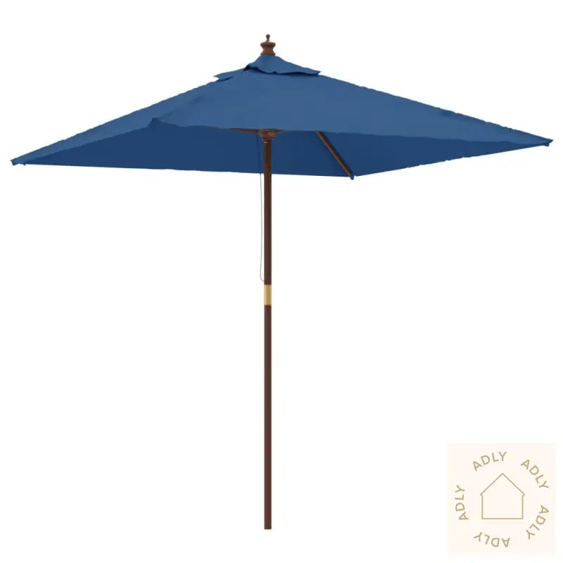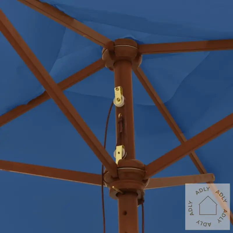 Dette produktet er ikke 100 % vanntett. For å forbedre vannmotstanden anbefaler vi å bruke vanntett spray.Farge: AsurblåMaterialer ramme: Massivt løvtre med teakfinish, laminert bambusMateriale trekk: 100% polyesterSamlet mål: 198 x 198 x 231 cm (B x D x H)Diameter stang: 38 mmMed luftventilasjon på toppenInkludert 4 solide ribberPraktisk enkelt trinsesystem for å åpne og lukkeMontering kreves: Ja
