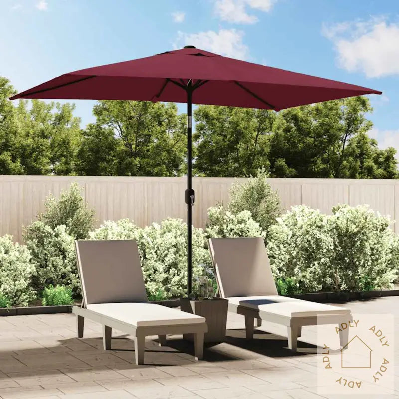 Farge: VinrødMaterialer: Slitesterkt polyesterstoff + stålstang og spilerSamlet mål: 300 x 200 x 252 cm (L x B x H)Diameter stang: 38 mmLufteventil for sirkulasjon og sveivesystem for enkel håndtering6 solide spiler for ekstra stabilitetStoff: Polyester: 100%