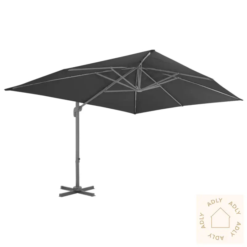 Farge skjerm: antrasittMaterialer: stoff med PA-belegg + pulverlakkert aluminiumSamlet mål: 400 x 300 x 268 cm (L x B x H)Mål kryssfot: 100 x 100 cm (L x B)Mål stang: 7 x 5 cm (L x B)Med lufteventil og sveivesystemVippbar og 360-graders roterende designInkluderer 8 aluminiumsspilerStoff: Polyester: 100%