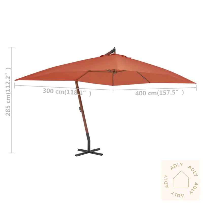 Denne elegante hengeparasollen i tre er et perfekt valg for å skape deilig skygge og beskytte deg mot solens skadelige UV-stråler når du slapper av ute. Den passer flott sammen med hagemøbler, og bidrar til å gjøre uterommet ditt enda mer komfortabelt og innbydende.