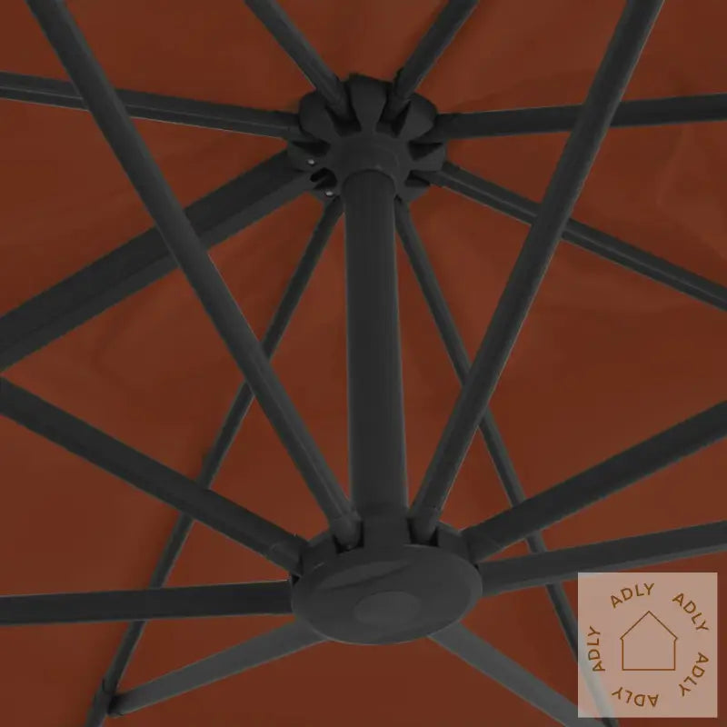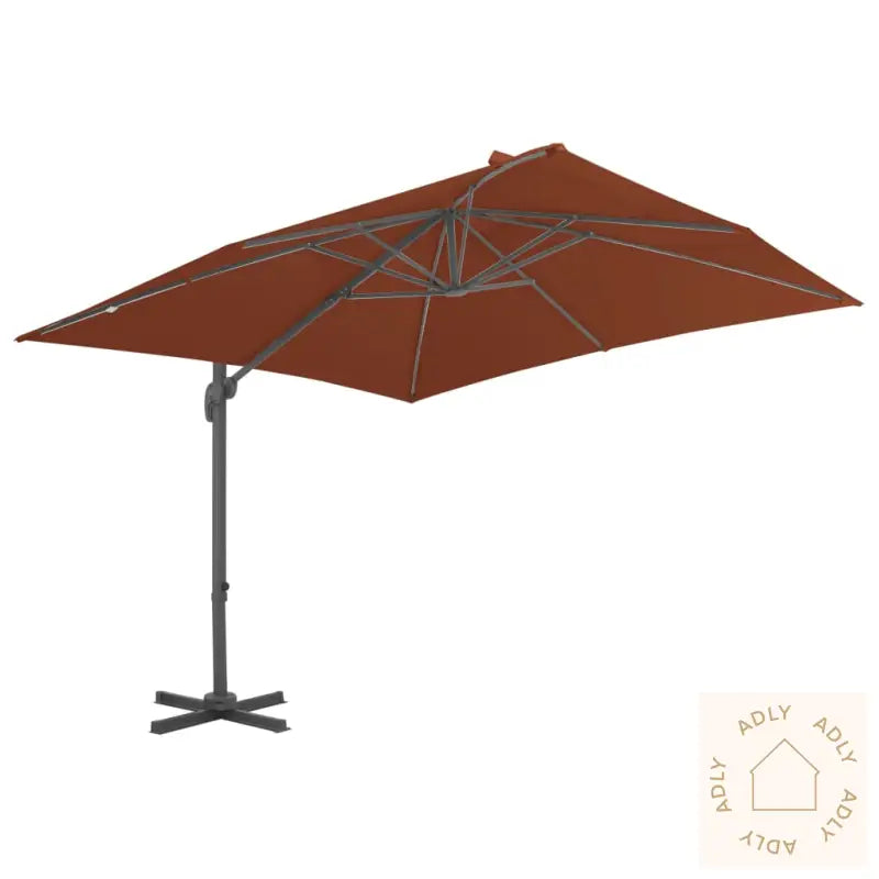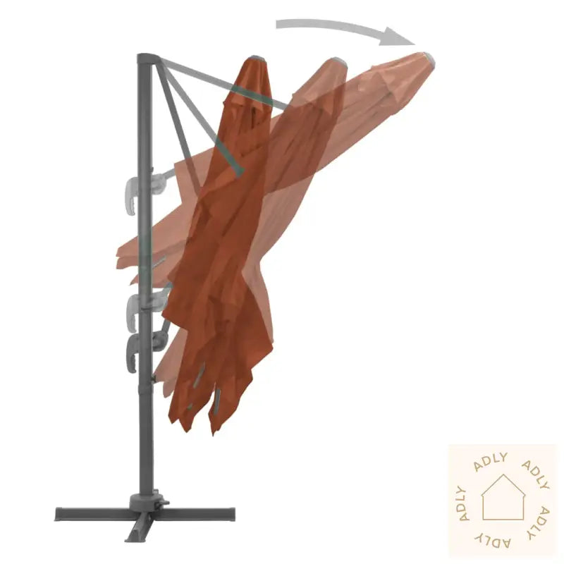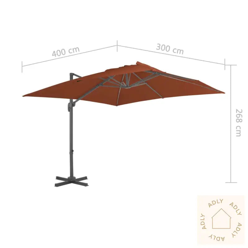 Farge skjerm: TerrakottaMaterialer: Stoff med PA-belegg, pulverlakkert aluminiumSamlet mål: 400 x 300 x 268 cm (L x B x H)Mål kryssfot: 100 x 100 cm (L x B)Mål stang: 7 x 5 cm (L x B)Med lufteventil og sveivesystemVippbar og 360-graders roterende designInkluderer 8 aluminiumsspiler
