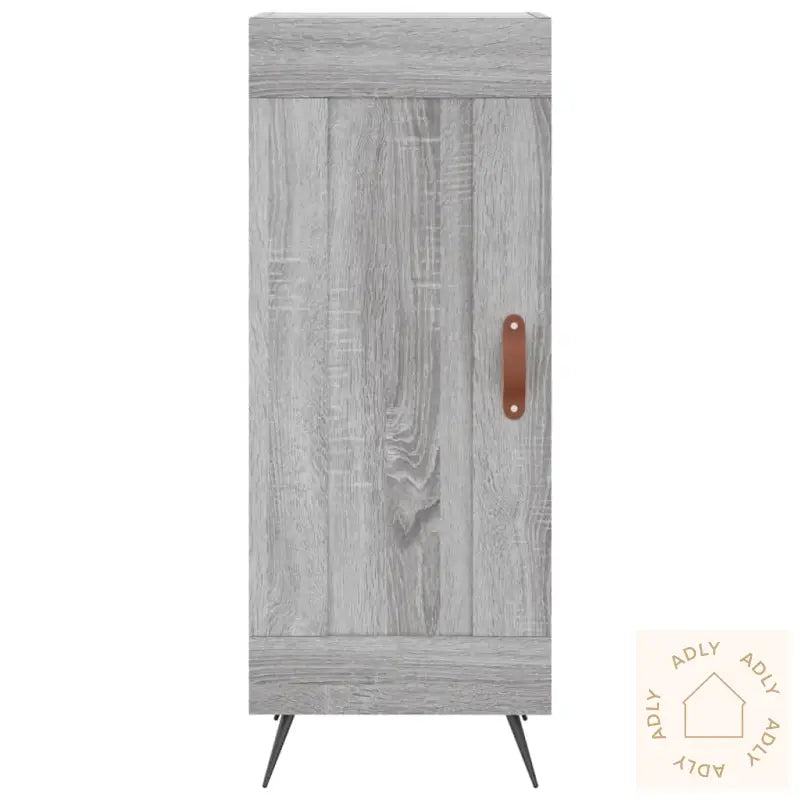 Slitesterkt materiale: Highboardet er laget av konstruert tre, noe som gir både styrke og lang levetid. Overflaten er glatt og enkel å holde ren, og materialet tåler fuktighet godt – perfekt for travle hjem der møbler må tåle litt av hvert.Rikelig med lagringsplass: Sideskapet byr på god plass til å organisere alt fra bøker og dekorasjoner til personlige småting, slik at du enkelt får orden hjemme. Ryddige omgivelser skaper trivsel, og med dette skapet holder du små nødvendigheter innen rekkevidde.Praktiske dører: Dørene hjelper deg å holde hjemmet ryddig, ved å skjule det du ikke ønsker skal stå fremme. Det bidrar også til at interiøret ser stilrent ut, noe mange setter pris på når de velger nye møbler.Metallføtter: Solide metallføtter gir highboardet god stabilitet og et moderne uttrykk. De fremhever det elegante designet og gjør at skapet står støtt – enten det er plassert blant bokhyller og stående hyller eller andre typer møbler.Advarsel: