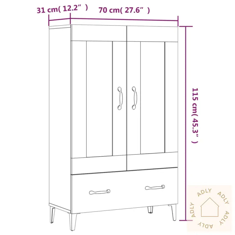 Farge: Høyglans hvit, som gir et rent og moderne uttrykk til hjemmet.Materialer: Konstruert tre og jern - slitesterke valg for kvalitetsmøbler.Mål: 70 x 31 x 115 cm (B x D x H) – passer perfekt inn både i mindre og større rom.Legal Documents: