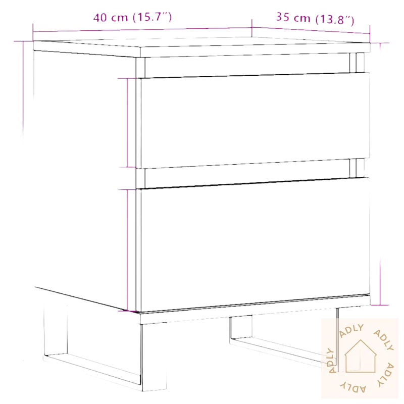 Slitesterkt materiale: Det konstruerte treverket gjør nattbordet robust og motstandsdyktig mot fuktighet og daglig bruk. Overflaten er glatt, enkel å vedlikeholde og kan raskt rengjøres med en fuktig klut – perfekt når du vil at dine møbler skal tåle litt av hvert over lang tid.Rikelig med lagringsplass: Med en praktisk skuff og et rom med dør får du lett plass til alt fra magasiner, fjernkontroller, ladere eller bøker. Alt holder seg ryddig og innen rekkevidde, slik at alt du trenger for kvelden er samlet på ett sted.Solid topp: Den stabile toppen gir god plass til å vise frem de små tingene som gir hjemmet personlighet – for eksempel bilder, planter eller favorittdekor. Bordet knytter sammen ulike interiørelementer, uansett om du kombinerer det med andre møbler eller hyller.Metallben: Stødige metallben gir ikke bare god stabilitet, men bidrar også med et moderne og avslappet uttrykk. Det gjør at bordet passer inn blant ulike typer møbler og gir rommet et løft.Advarsel: